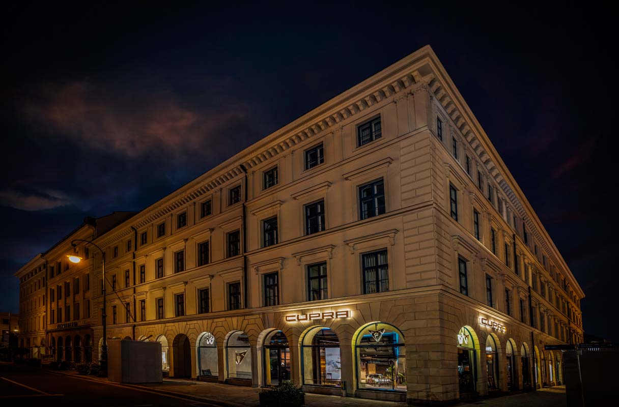 As part of its globalization strategy, CUPRA has chosen Munich to open its newest City Garage, a unique location at the heart of the German city. The open façade space is inspired by a garage and dedicated to the CUPRA brand. Located in an iconic building in Odeonsplatz, the CUPRA design elements are merged within the building original architectural elements and materials respecting the history of the space.