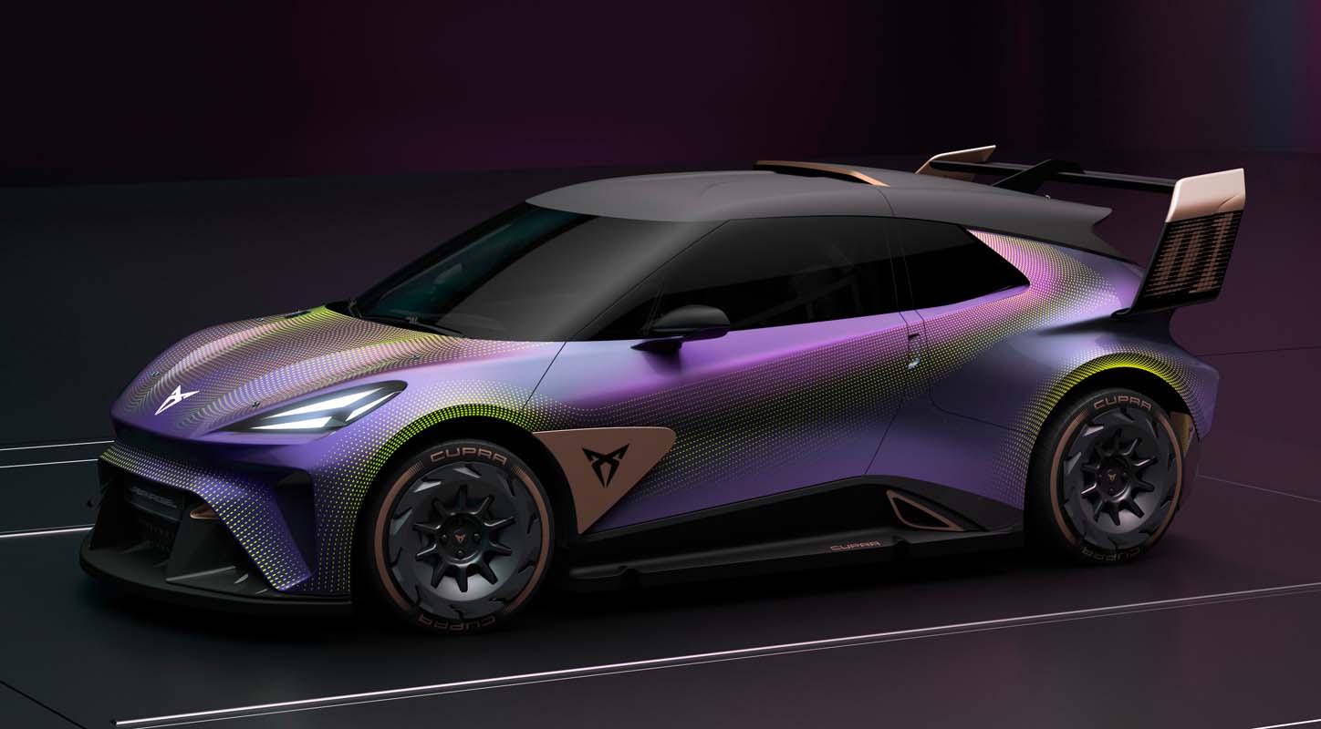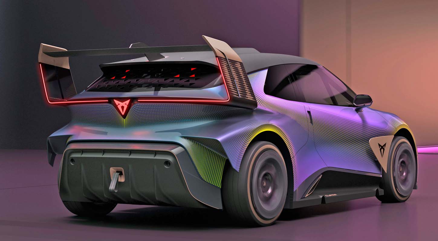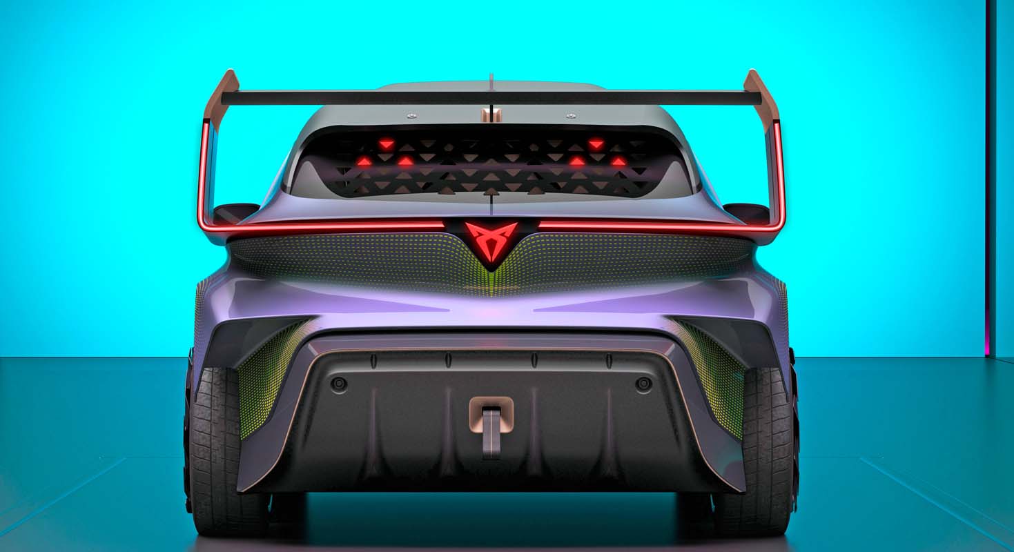 “The CUPRA UrbanRebel Concept injects a gamification look to the racing car, projecting a radical interpretation of the company’s urban electric car,” said Jorge Diez, CUPRA Design Director. “Each contoured line and sculpted surface in the design is brought to life by a livery that uses kinetic particles to add movement to the surface as light shifts across it.”