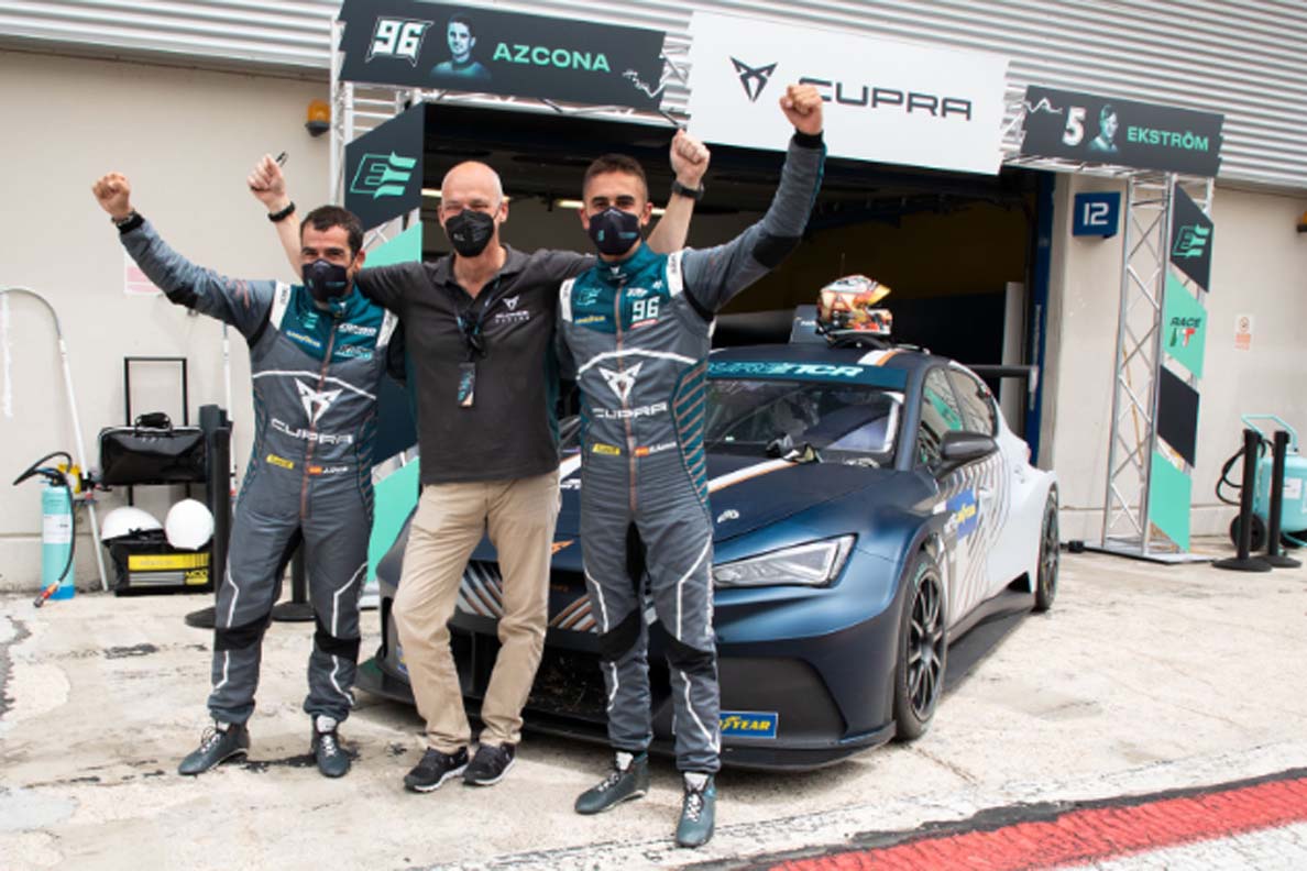 CUPRA, the CUPRA e-Racer and Mikel Azcona have made history at the premiere of the PURE ETCR at the Vallelunga circuit (Italy), where they have claimed the victory in the first event of an all-electric multi-brand touring car championship. Azcona scored the maximum points at stake, making him the first “King of the Weekend” and the championship leader.