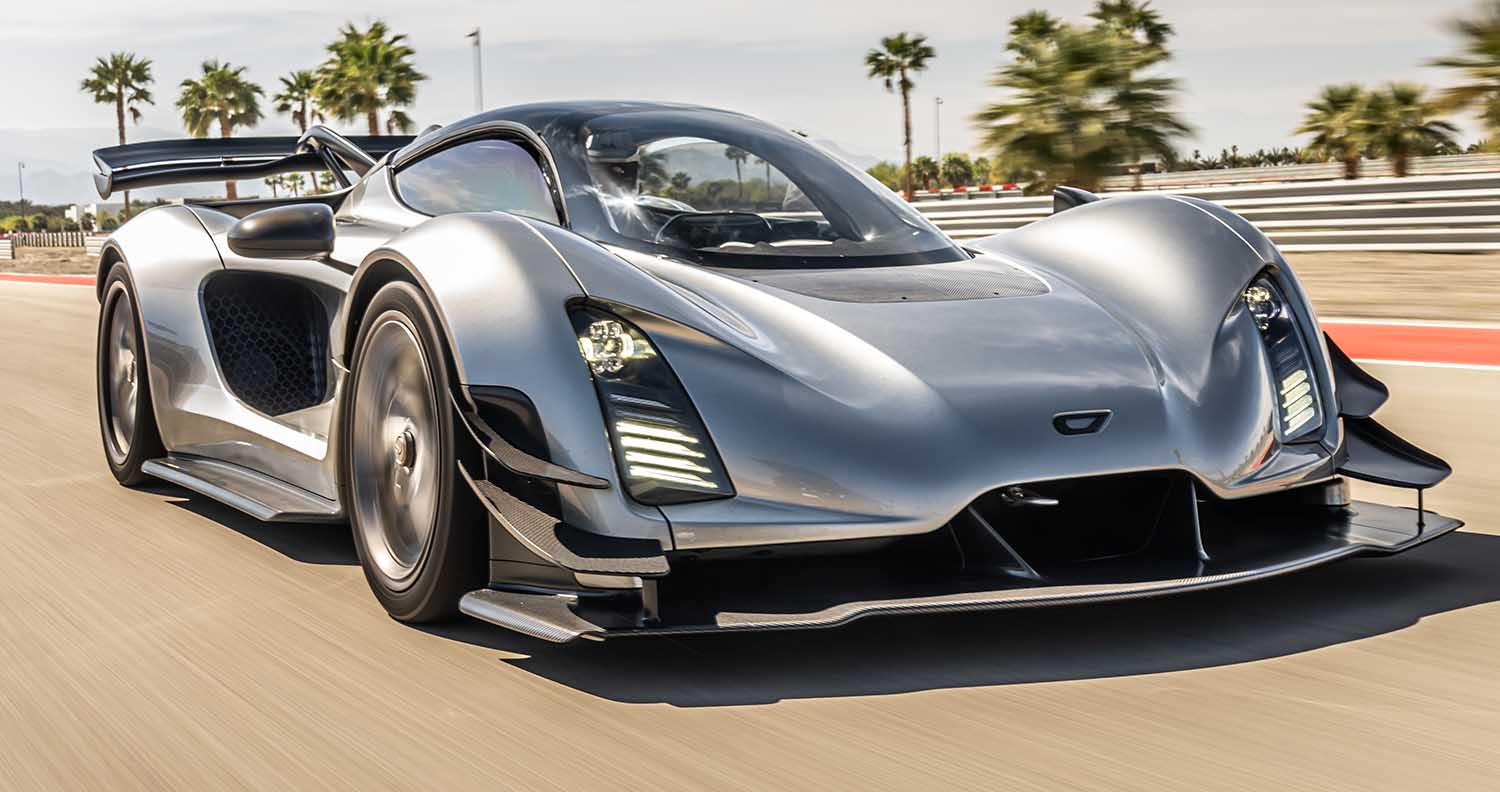 That astonishing power is distributed across all four wheels via a seven-speed sequential transaxle gearbox which, in a car weighing just 1250kg, equates to devastating performance. The 0-62mph sprint is dispatched in 1.9 seconds, while 0-186mph takes only 8.5 seconds. A top speed of 253mph is possible.