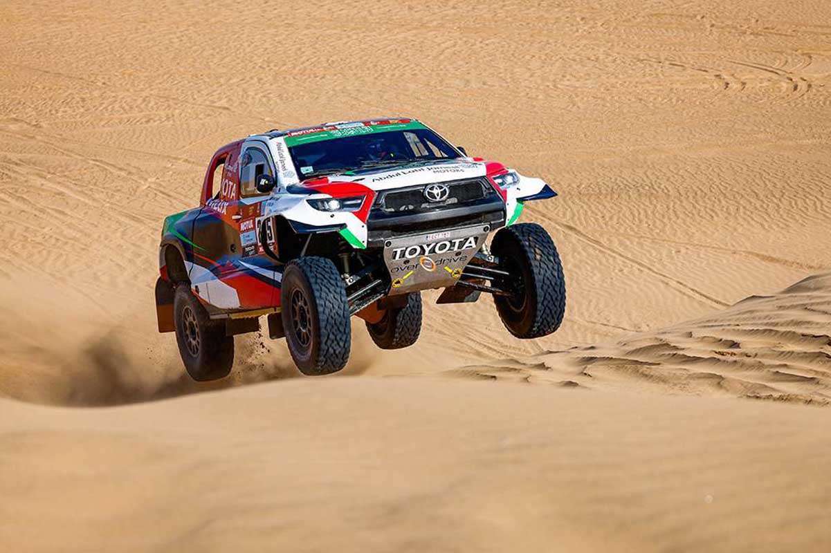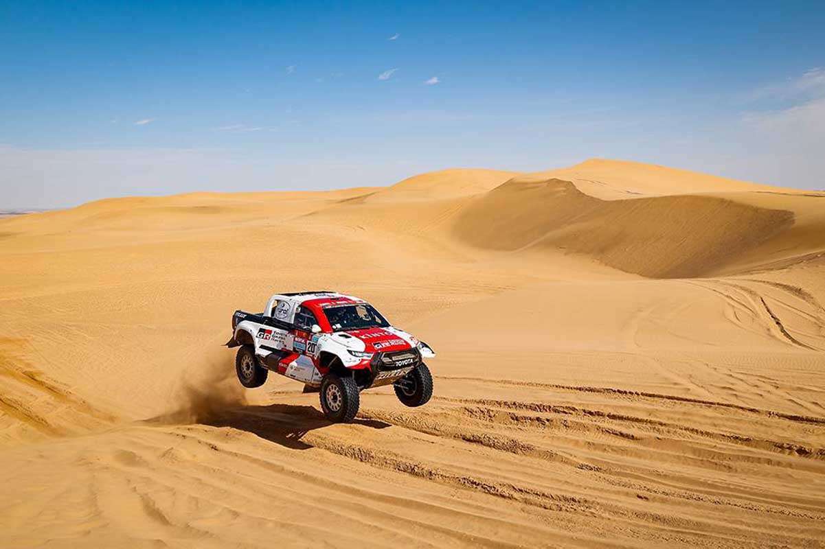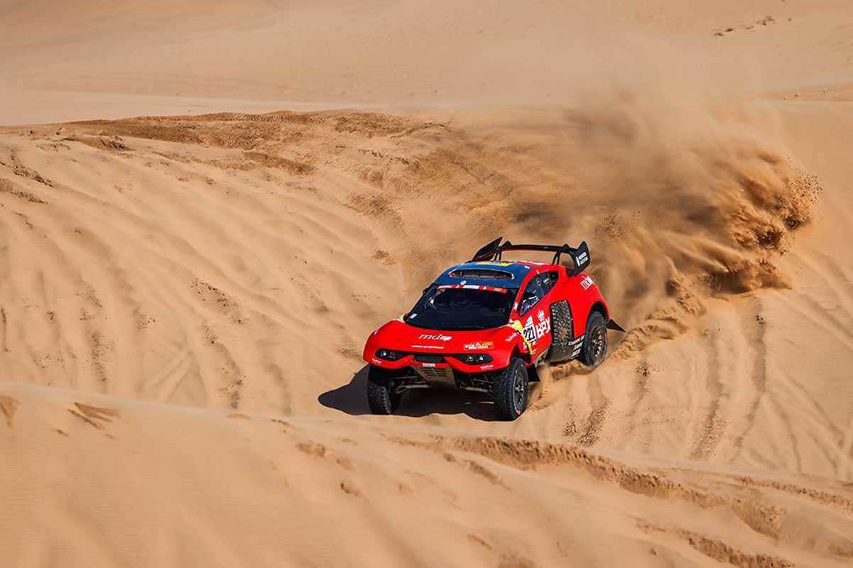 Two-dimes Dakar winner Nani Roma and Alex Haro in the third Prodrive Hunter ran out of luck when a suspension problem forced them to stop to carry out repairs, losing an hour in time.