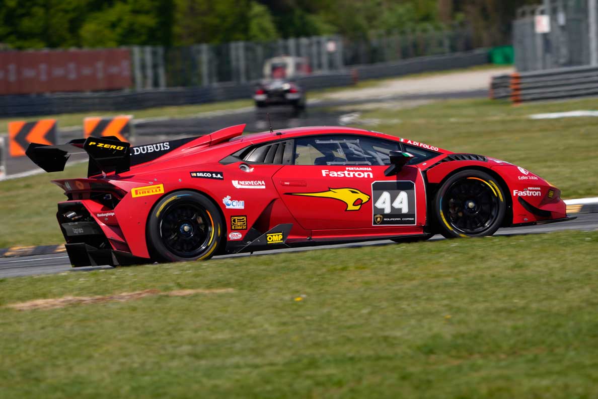 Di Folco, having taken pole position in Saturday’s second qualifying session by nearly half a second, backed up his raw speed in the #44 Imperiale Racing Huracán Super Trofeo Evo by maintaining his lead off the rolling start. Unlike in Race 1, the field managed to get through the first corner without incident, as Di Folco headed the #7 GSM Racing car of fellow front-row starter Jonathan Cecotto.