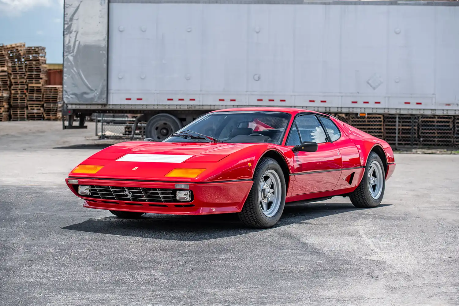 Only 1,007 examples of the 512 BBi were built between 1981 and 1984. This specific car, chassis 39927, is said to have been delivered new in France. It now resides in the United States and shows just over 72,000 kilometers on the odometer.