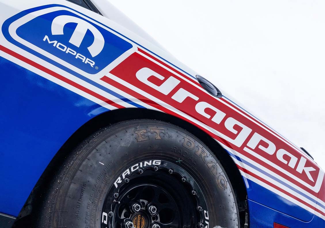 The NHRA-certified roll cage is constructed from 4130 chromoly tubing and is fully TIG-welded, ensuring greater safety and integrity. The cage is fully integrated with the factory unibody through attachment points at the front and rear shock towers, B-pillars, vehicle floor and rocker panels. This integrated chassis approach is a result of Mopar’s involvement in different classes of drag racing over the years, as well as the stringent approach to safety mandated by the NHRA. The chassis is designed to work in combination with the rear suspension, channeling the forces from the control arms and coilover shocks directly into the roll cage, versus the body panels. The increased stiffness allows the new Drag Pak to be more responsive to tuning changes, enabling racers to extract more performance in the quarter-mile.
