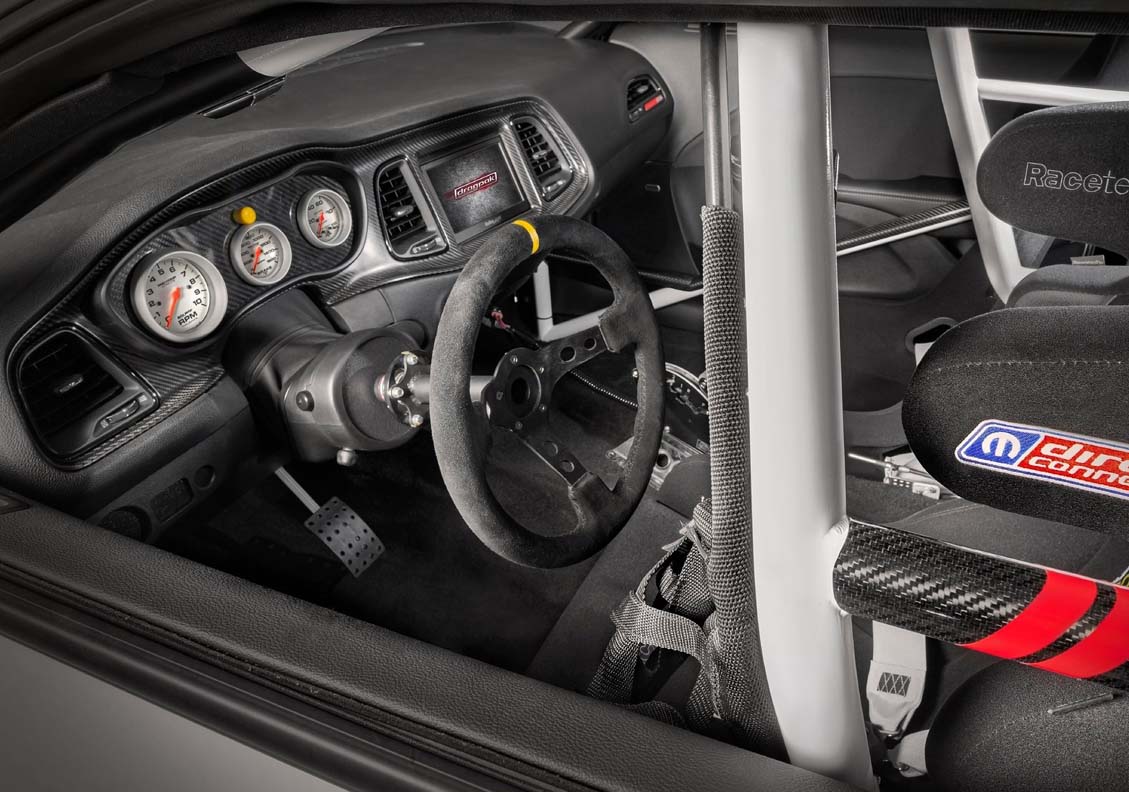 Rounding out the Factory Stock racing class feel on the interior are custom-cut lightweight carpeting, carbon fiber tube protectors and SFI-compliant roll bar padding.