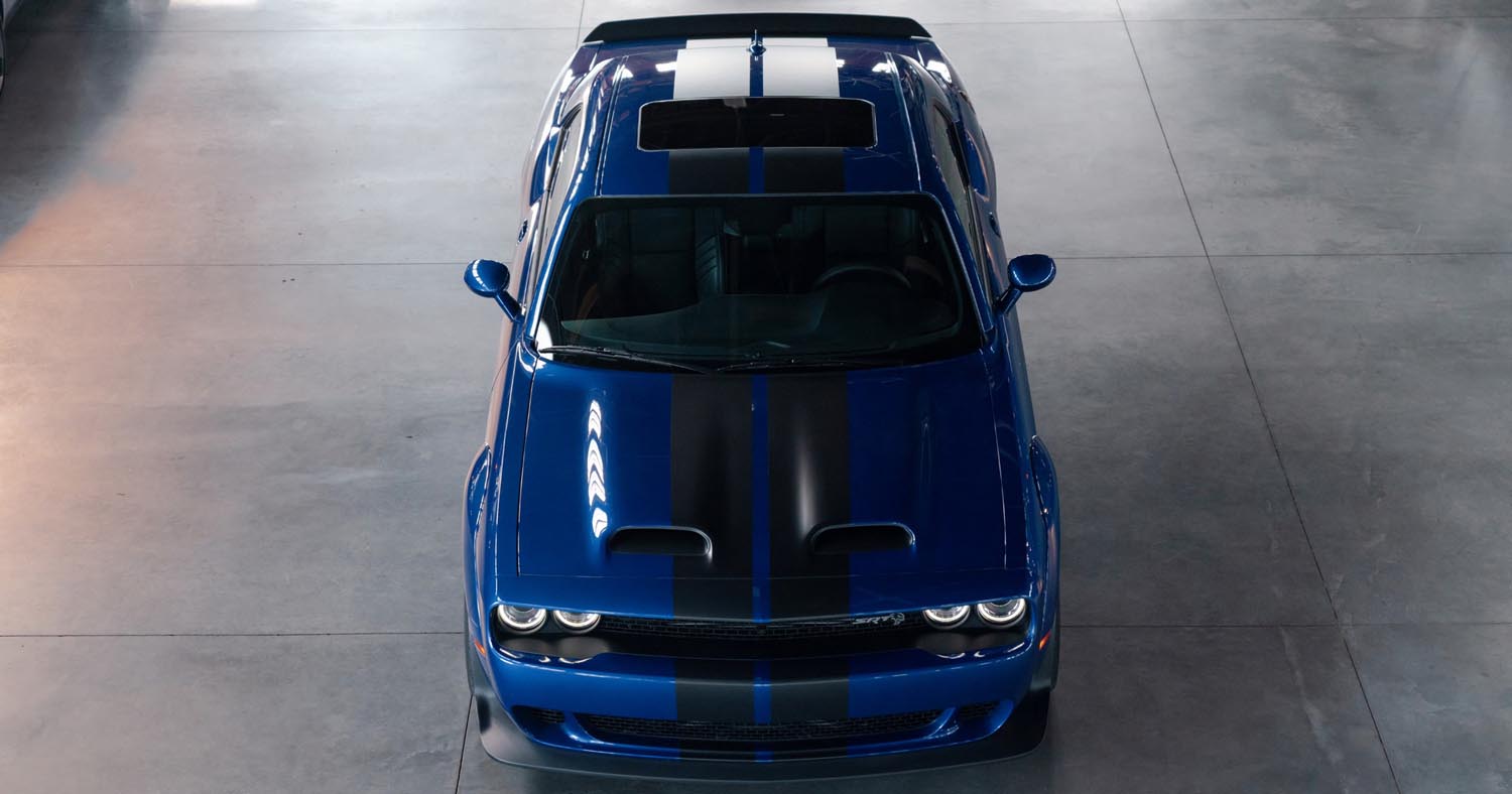 The Dodge Challenger SRT Super Stock gets its name from the “Super Stock” class of vehicle in drag racing. It’s defined by vehicles that may look like ordinary passenger vehicles, but they are highly modified race cars.