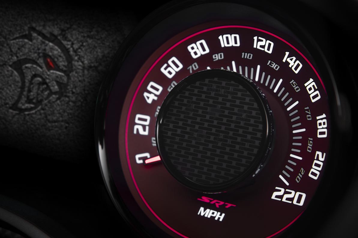 - Launch Assist – Launched on the Challenger SRT Demon as a factory-production car first, Launch Assist helps resolve one of the biggest challenges to clean launches and driveline integrity – wheel hop, which happens when tires quickly slip and regain traction at launch, rapidly storing up and releasing energy in the driveline. These high torque spikes can quickly and severely damage driveline components and, up until now, the only solution was to back out of the throttle. Wheel speed sensors watch for signs that the tires are slipping/sticking. If hop is detected, the engine control module momentarily reduces torque to maximize traction almost instantly – without the driver having to lift the throttle. Launch Assist reduces loads in the driveline from wheel hop by up to 20 percent