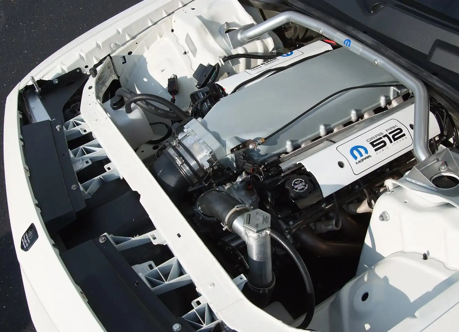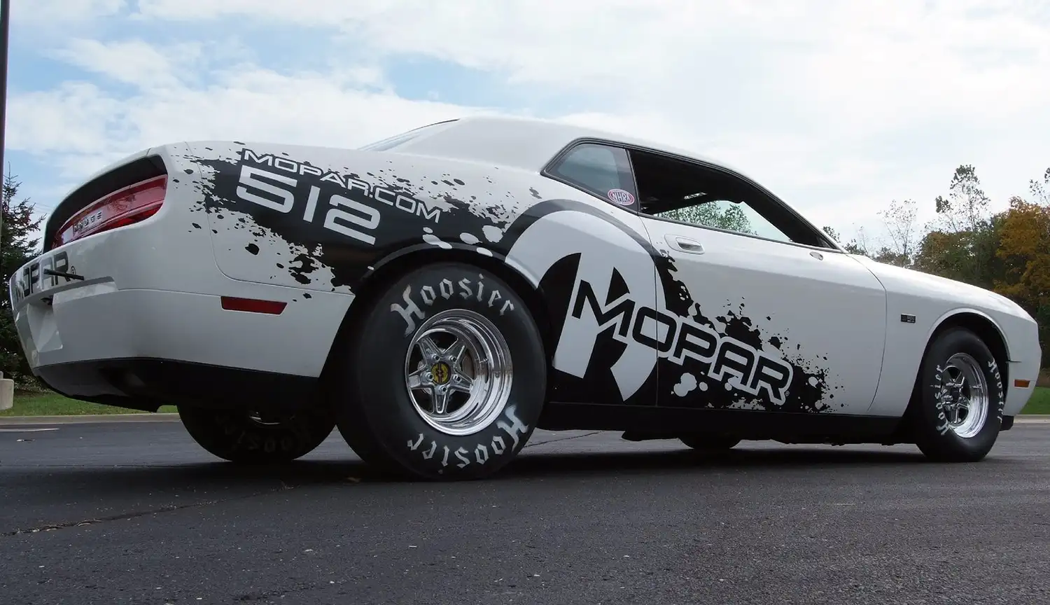 Based on the 2011 Dodge Challenger and finished in a Stock Eliminator and Super Stock configuration, the 2011 Dodge Challenger V10 Mopar Drag Pak is the first and only 500-plus cubic-inch V-10 drag-race package car. The car features competition wheels and tires, a Mopar solid rear axle with performance gear ratio, a 2-speed drag race transmission with integrated roll control, a complete competition fuel system with fuel cell, and a complete interior with gauge package.