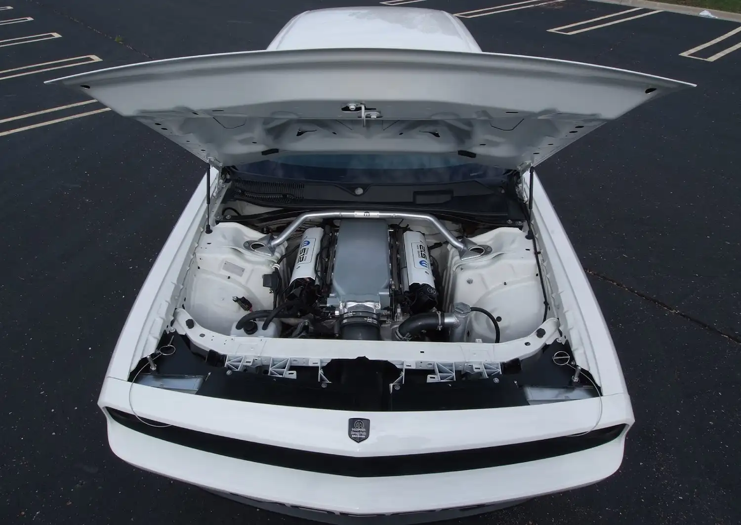 The Dodge Challenger V10 Mopar Drag Pak features a Bright White paint scheme with color options. The Manufacturer’s Suggested Retail Price (MSRP) is $85,512 and production begins early next year.