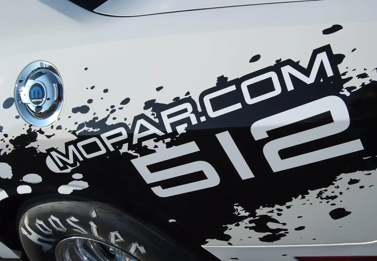 Mopar offers three options with this vehicle. First, the Competition Package includes an eight-point roll cage, six-point safety harness and a mesh window net (MSRP: $7,950, part number P5155820). Second, a Mopar logo body wrap (MSRP: $950, part number P5155892) and a range of body colors (MSRP: $6,800, part number P5155893). With the Competition Package, the car is ready to go down the drag strip.