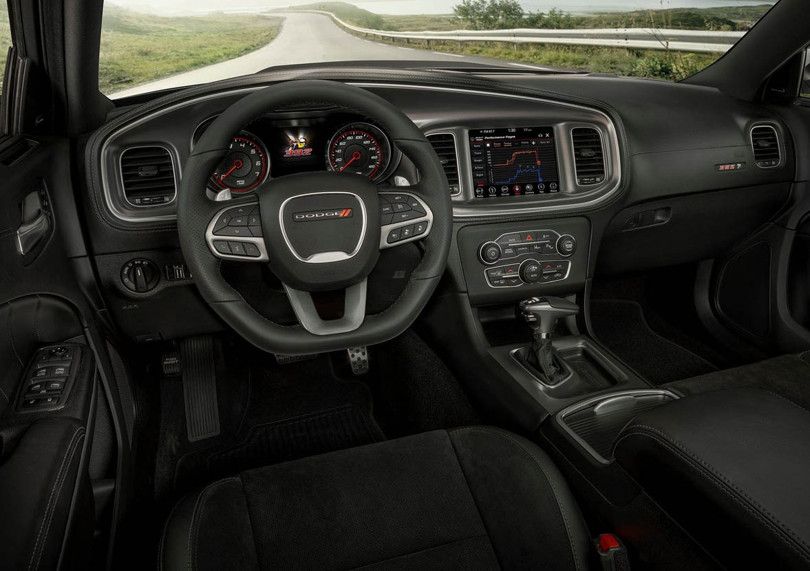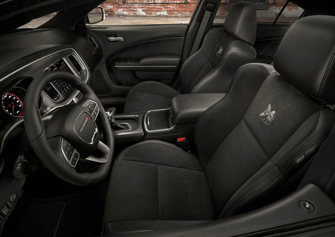 - Available new Carbon & Suede Package that adds real carbon fiber accents to the instrument panel and console bezels and Dynamica suede headliner, sun visors and A-pillars (also available on Charger R/T and Charger SRT Hellcat Widebody models)