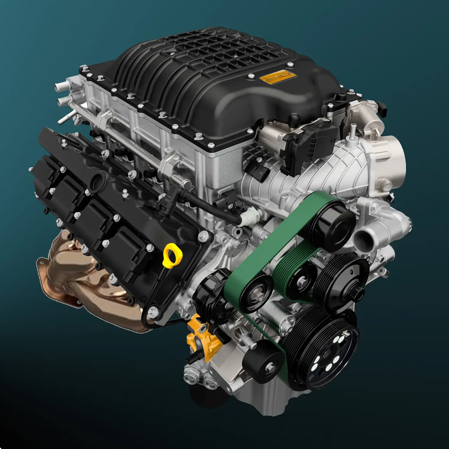 - Hellcrate 6.2L Supercharged Crate HEMI Long Block (part number: P5160618AA) is capable of boosting performance to 717 horsepower and 656 lb.-ft. of torque and includes engine assembly components from the cylinder head with valvetrain, engine block with crankshaft, connecting rods, piston and ring, camshaft and lifters, oil pump and pan, and front timing cover with harmonic balancer. MSRP: $9,495