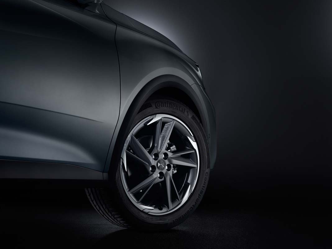 Based on the BASTILLE + finish, DS 7 CROSSBACK LIGNE NOIRE is supplemented by DS ACTIVE LED VISION turning headlamps, front and rear parking sensors with reversing camera, aluminium pedals and footrest, as well as 19-inch ROMA alloy wheels. In its E-TENSE 225 and E-TENSE 4×4 300 plug-in hybrid versions, DS 7 CROSSBACK LIGNE NOIRE also comes with DS ACTIVE SCAN SUSPENSION camera-controlled damping and laminated glass front and rear for exceptional comfort and sound proofing.