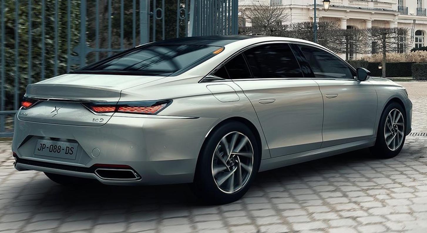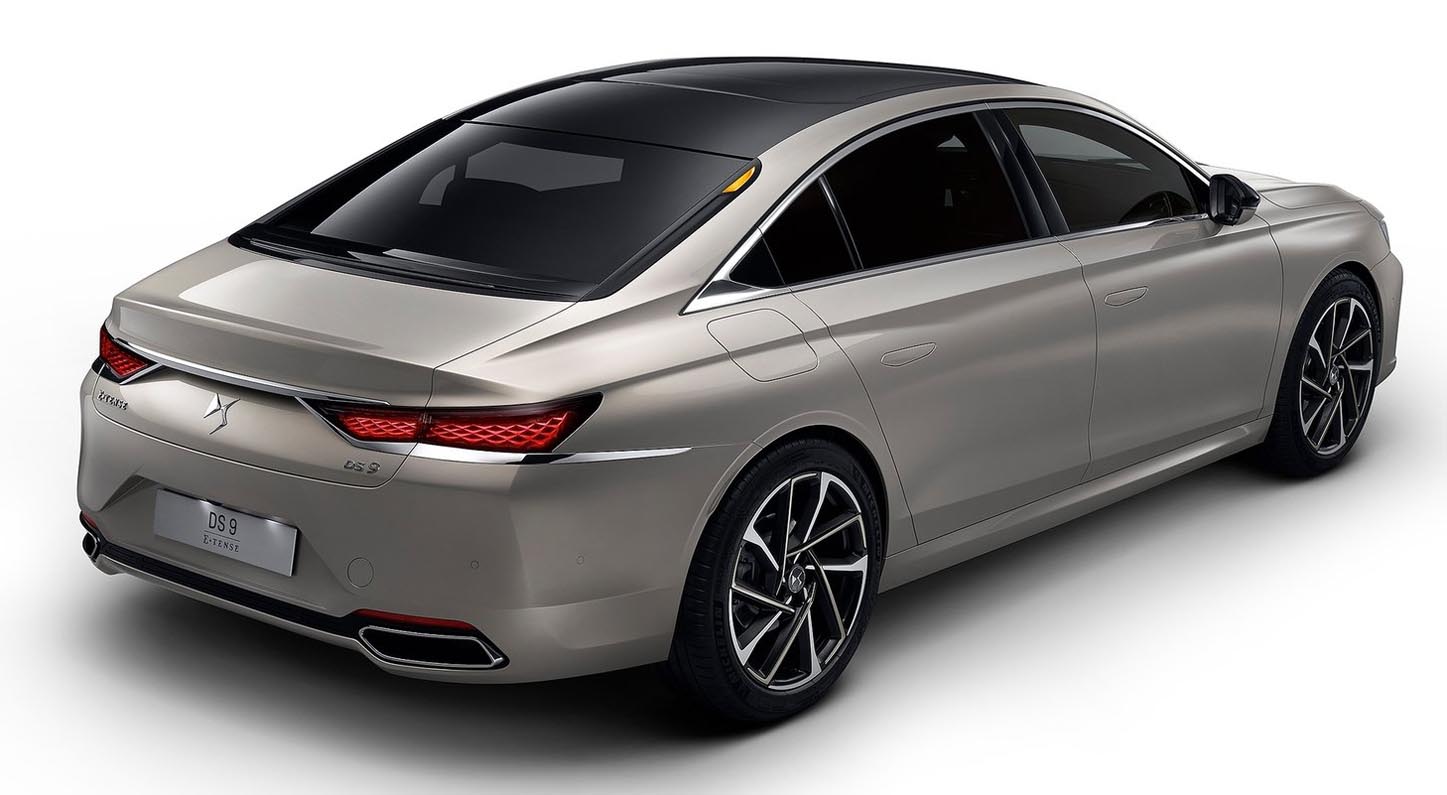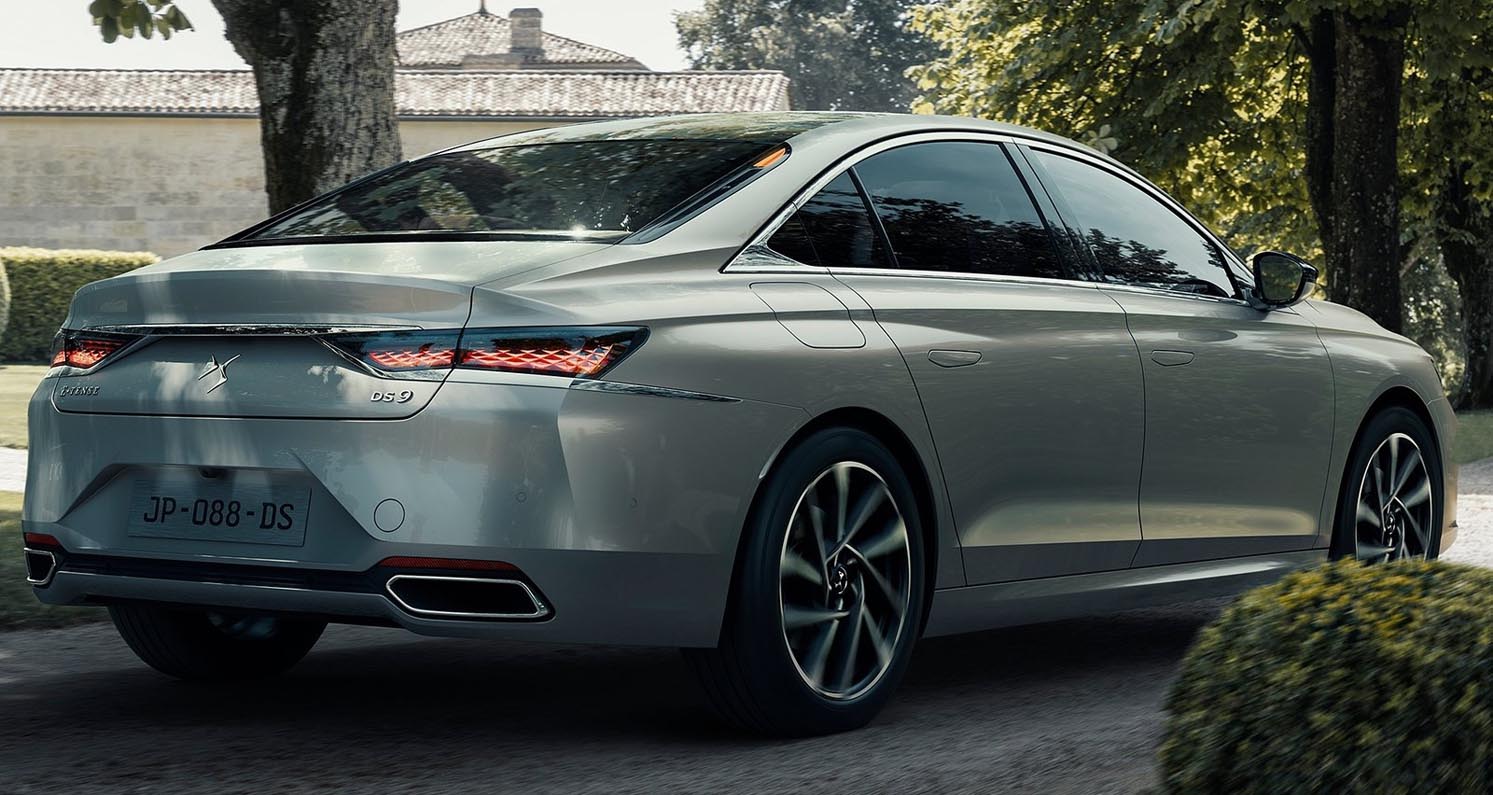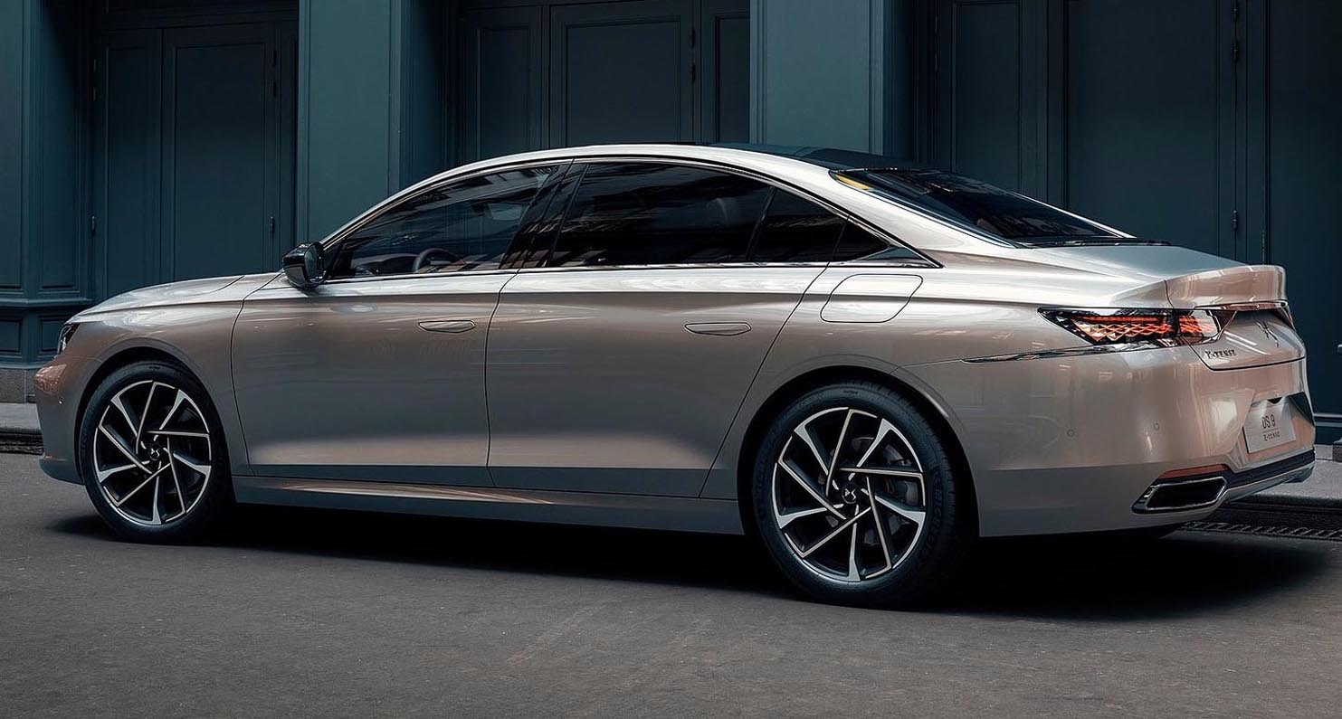 With a length of 4.93 metres, width of 1.85 metres and large 690mm diameter wheels/tyres, DS 9 is more striking than other saloons in its class. It uses a new version of the EMP2 (Efficient Modular Platform 2) architecture with a longer wheelbase not used with a saloon car before, which greatly benefits the rear passenger space. Its design has a sleek silhouette with a steeply raked rear window, fastback style.