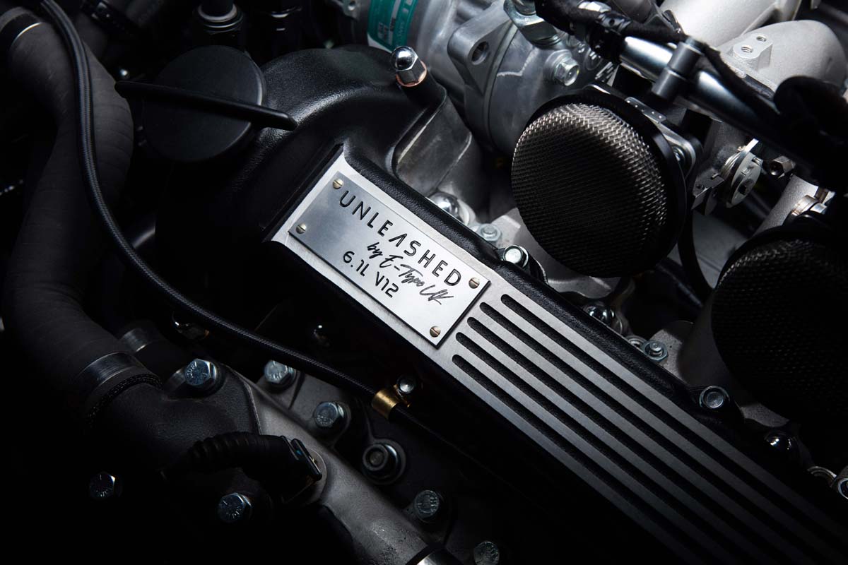 At the heart of Unleashed sits a significantly enhanced V12 engine, re-engineered by E-Type UK’s team of leading experts. Each of the 12 cylinders has been re-bored to increase the engine’s capacity by 800cc, taking it from 5.3 litres to 6.1 litres, with a new 12-branch ceramic-coated stainless-steel sports exhaust ensuring Unleashed’s thunderous performance is accompanied by a free-flowing engine note – although still subtle enough to remain a comfortable grand tourer.