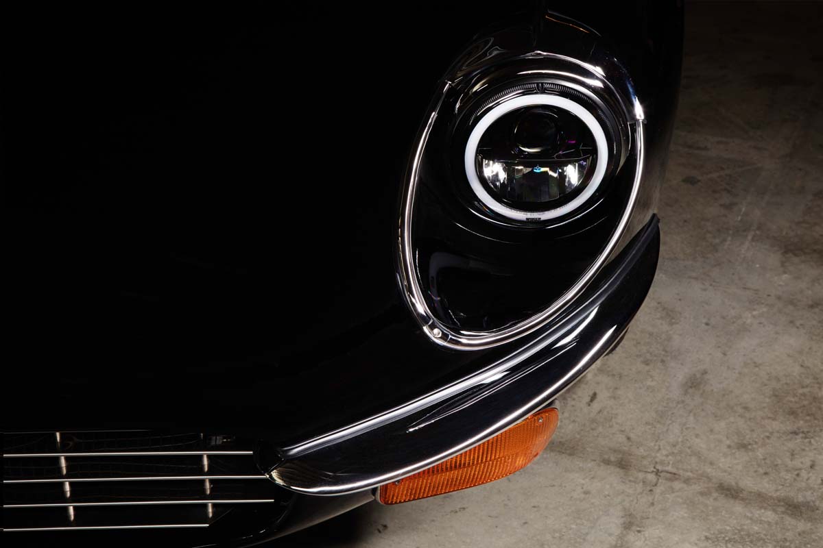 The prominent bonnet design of the Series 3 E-type remains and is now complemented by extended louvres to allow for improved engine cooling. LED optical headlamps with daylight running function greatly advance the all-around usability of the car – as well as providing a unique visual signature – with visibility both inside and outside the car in low light improved significantly.