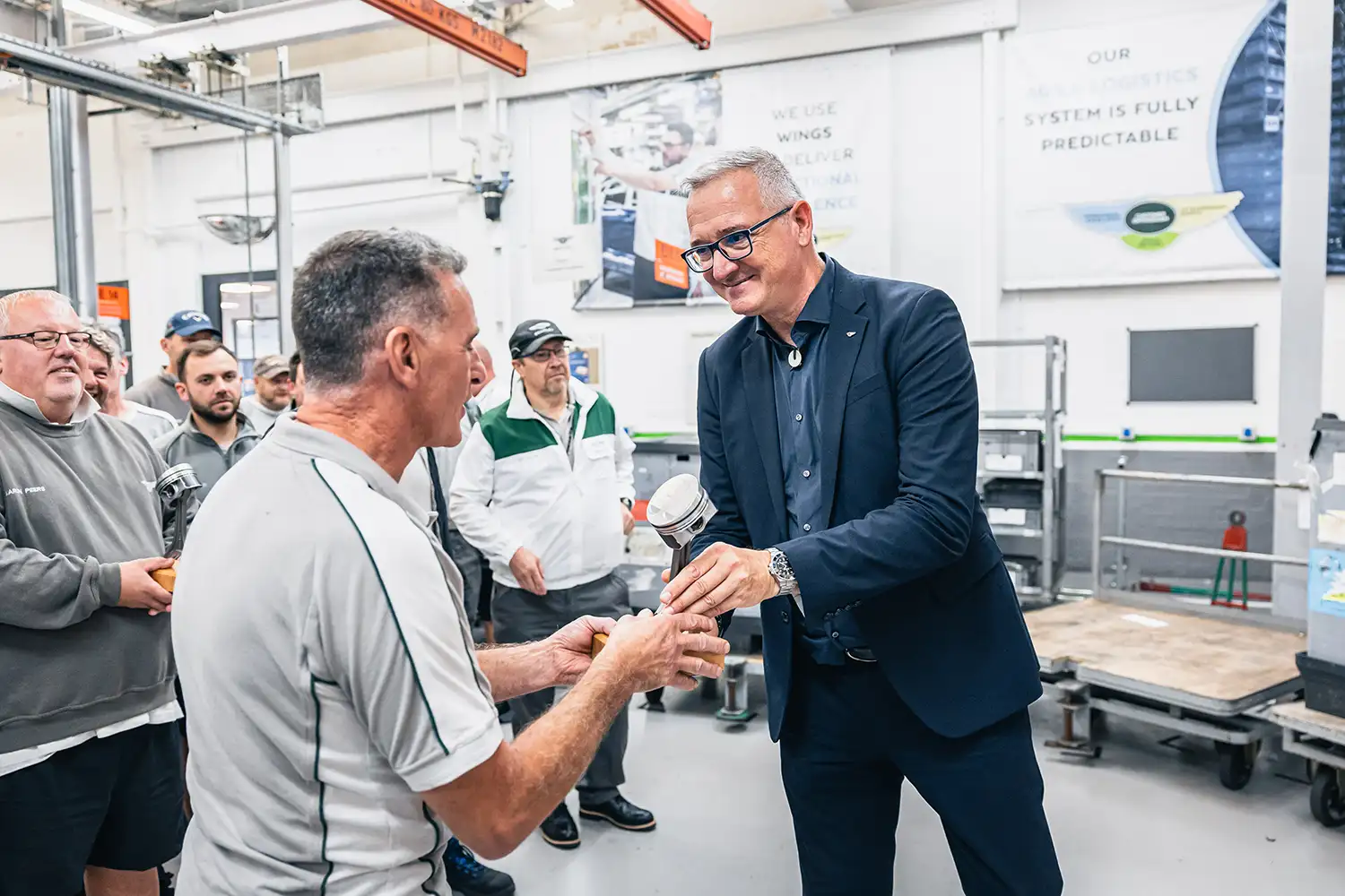 To commemorate this occasion, a special lunch for the W12 assembly and R&D teams was held at Bentley’s Heritage Garage in Crewe. Guests gathered to form part of a W12 portrait photograph in the Pyms Lane Plaza, and assembly colleagues were presented with commemorative W12 engine pistons.