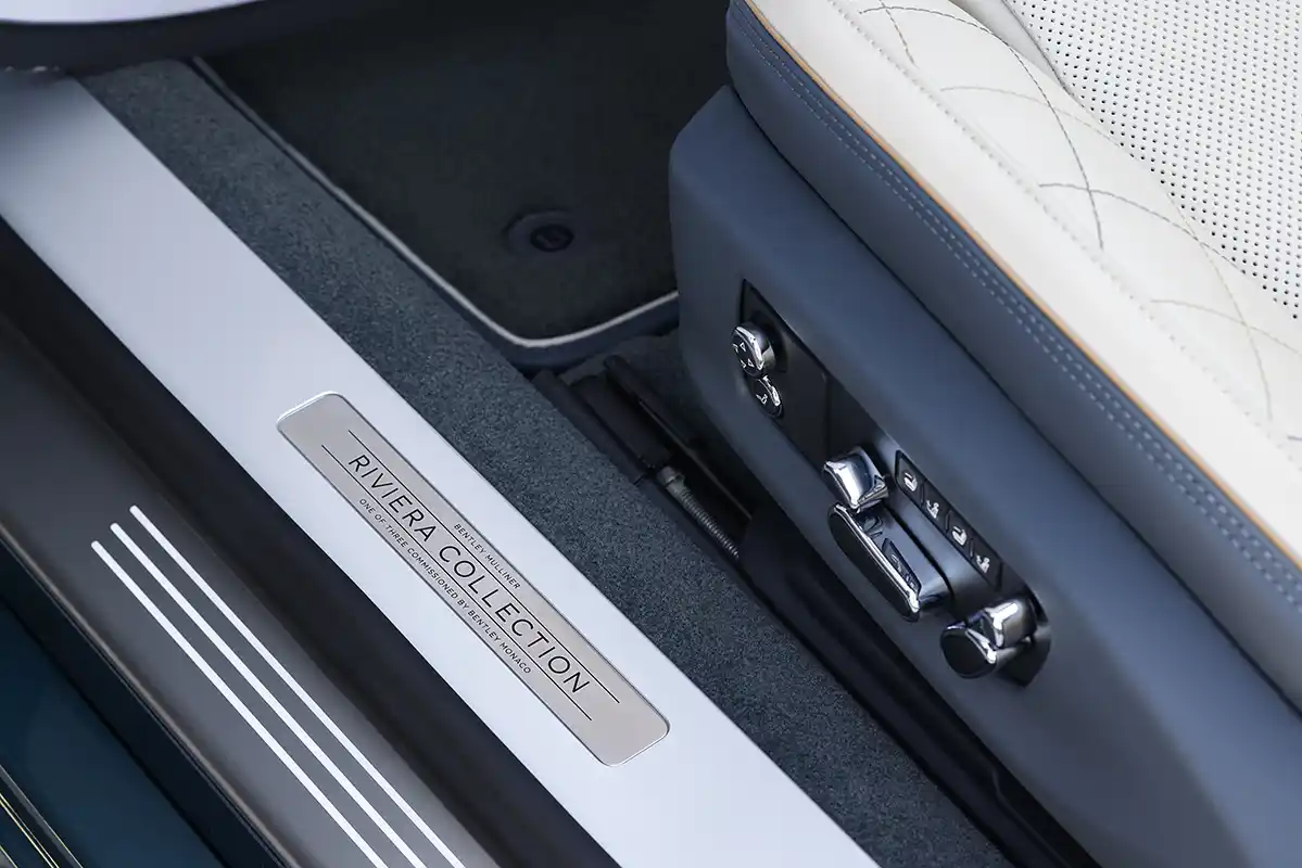 The handcrafted detailing of the Mulliner Riviera Collection reflects the exclusive character of the French Riviera, home to the prestigious Monaco Yacht Show every summer. This includes a choice of three unique exterior palettes for Monegasque customers – Aegean Blue, Aquamarine and Caribbean Blue – created to mirror the colours of the Mediterranean Sea. The same paintwork also extends to a Carbon Fibre Bodykit and Boot Lid Spoiler.