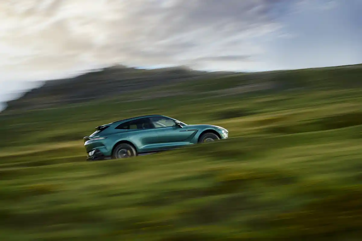 The emotive creative, shot amongst the intense British landscape of Dartmoor National Park, features the BAFTA and Academy Award nominated actor delivering a powerful monologue to camera as an Aston Martin Racing Green DBX707 appears on the horizon and roars into its commanding role.