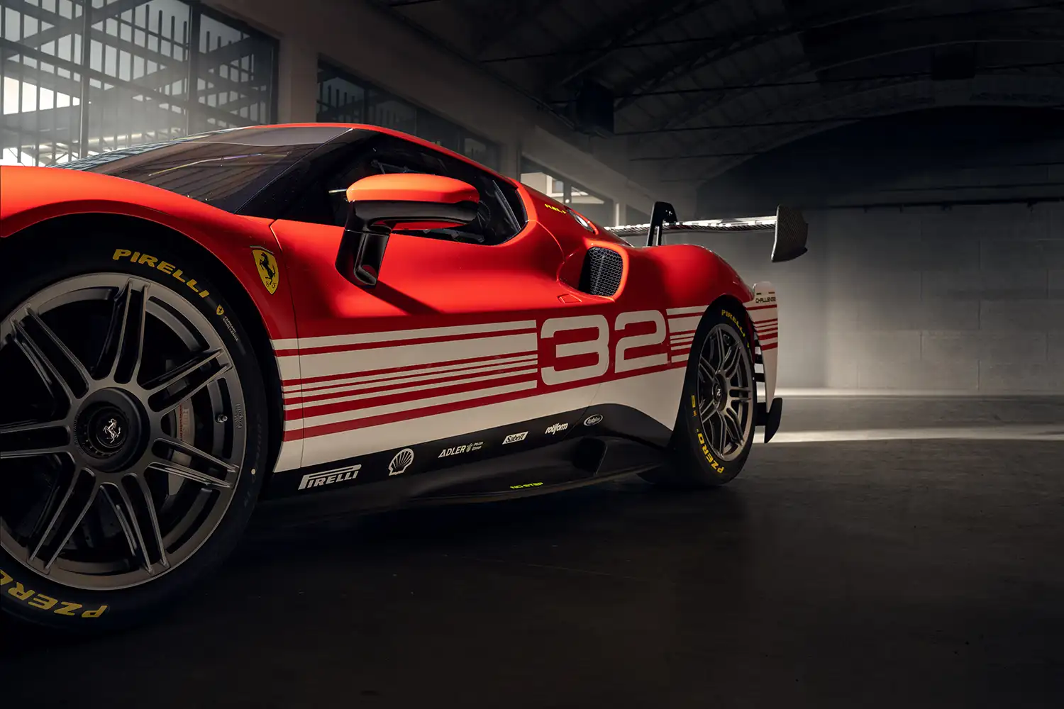 The layout of the cooling system was modified as a result of removing the hybrid elements. The location and arrangement of the radiating masses is the same as on the 296 GT3, with the water radiator for the high temperature circuit at the front, with the condenser for HVAC circuit ahead of it. The two intercoolers and the engine air filters from its road-going counterpart have been retained at the rear.