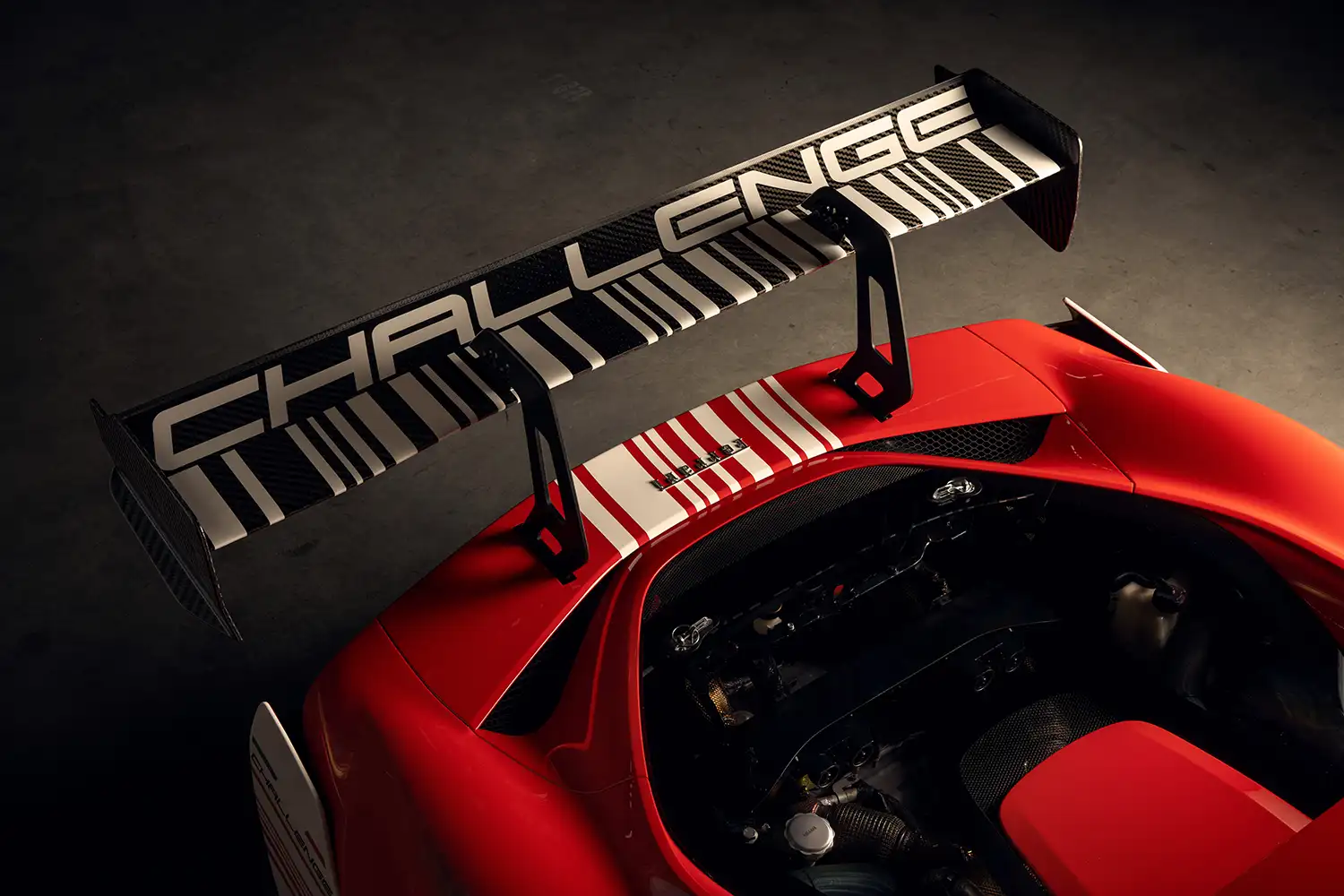 Compared to the road-going engine, the Challenge specification sees a number of modifications to capitalise on the lower back pressure. The maximum speed of the turbos has been increased by 10% to 180,000 rpm, increasing the turbo boost pressure by the same amount, and the spark advance has been anticipated, providing a slight increase in pressure in the combustion chamber. The result is a 37 cv increase in power compared to the road-going 296 GTB and GTS, with the same maximum torque output, slightly lower in the rev range.