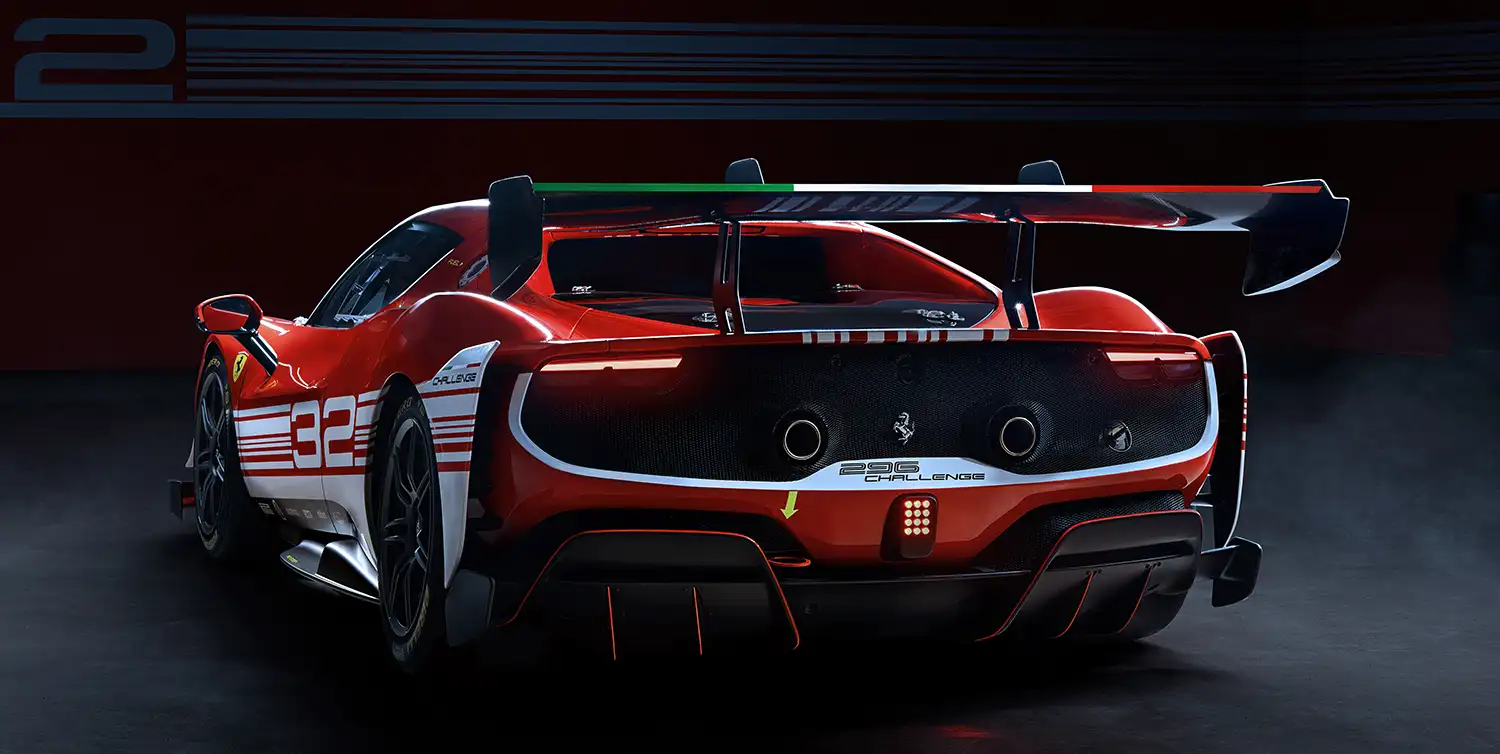 The philosophy underpinning the Ferrari 296 Challenge demanded an evolution of the concept behind the Ferrari Challenge competition model. It represents a further step on from a production-derived car with relatively modest modifications, to a car with a number of important revisions to optimise its track use. This paradigm shift allowed the design team to create a model that is, in certain respects, extreme and that significantly raises the bar in terms of overall performance, as well as in its consistency and repeatability throughout test sessions or races.