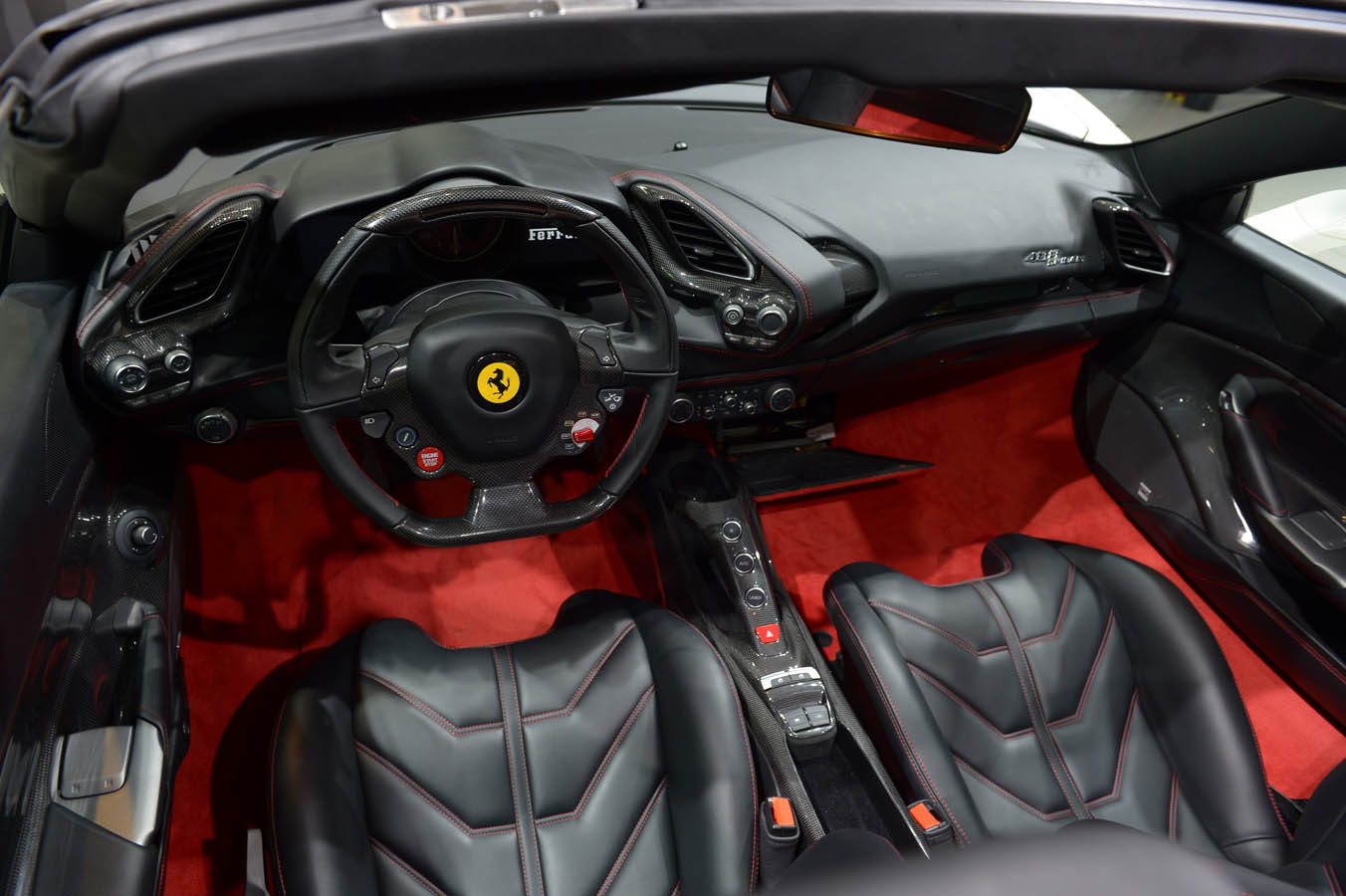 The 488 Spider adopts the new keyless start thanks to a chip which communicates wirelessly with the car’s ECU. The car can thus be started or turned off by simply pressing the “Start/Stop Engine” button on the steering wheel with the key in the driver’s pocket or in the special storage area on the tunnel.