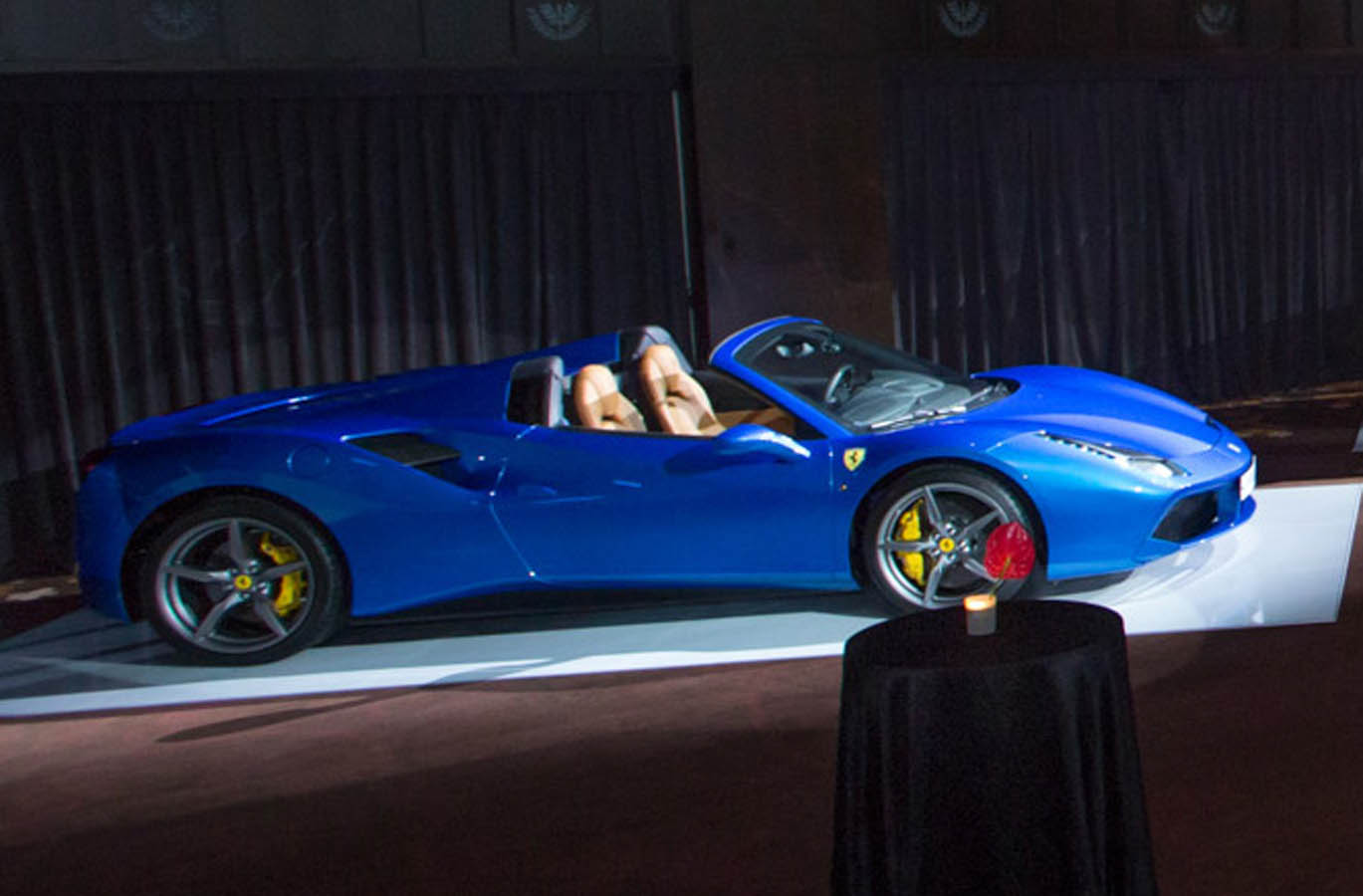 The Ferrari 488 Spider also debuts a new colour designed to enhance its sleek yet muscular forms. The Blu Corsa livery almost seems to meld with the sky above and the metallic particles suspended in the paint lend the bodywork a gloss that underscores its sculptural forms. This metallic blue strikes the perfect balance between unostentatious sportiness and contemporary elegance. Its unusual iridescent effect is thanks to the two-layer paintwork.