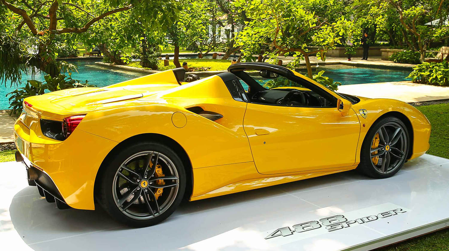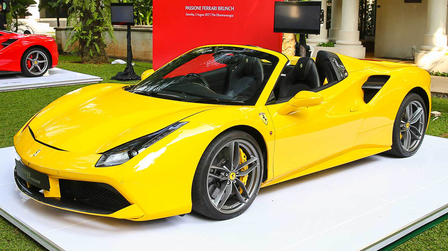 The 488 Spider sports new, lighter 20″ rims. Forged 20″ wheels are available to order and shave a further 8 kg off the car’s weight.