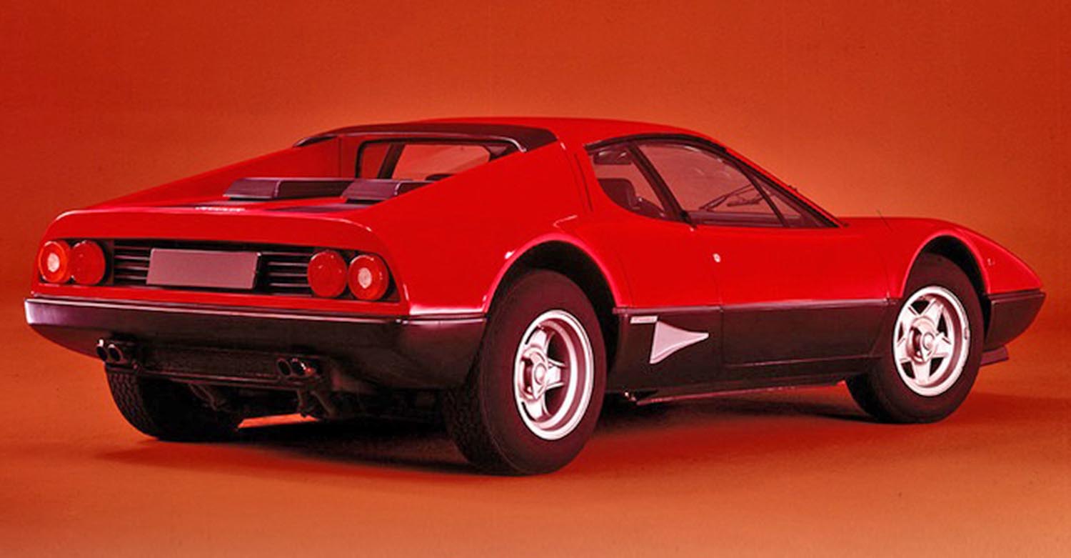 Visually the differences between the 512 BB and the 365 GT4/BB were mainly around the nose and tail. The lower nose panel now incorporated a chin spoiler, and at the rear the triple tail light assemblies and triple exhaust pipes gave way to large twin circular lenses and paired twin exhaust pipes. The twin tail light arrangement mirrored that shown on the original prototype displayed at the 1971 Turin Salon. The mesh tail panel of the 365 GT4/BB was replaced by a satin black finished horizontally louvred panel, with further changes to the louvre arrangement on the engine lid. The body sides received NACA ducts forward of the rear wheel arches to cool the exhaust system, whilst the rear track was increased from 1520mm to 1563mm.