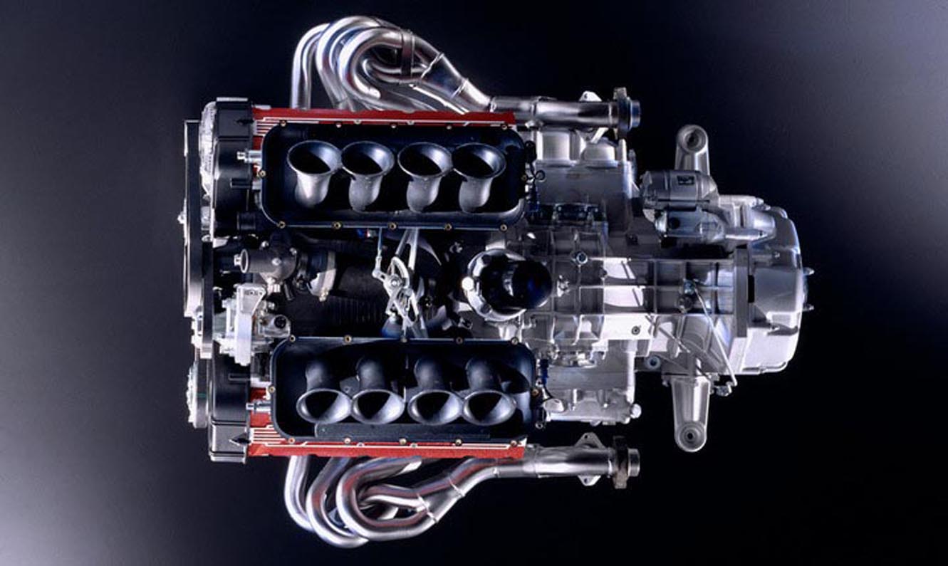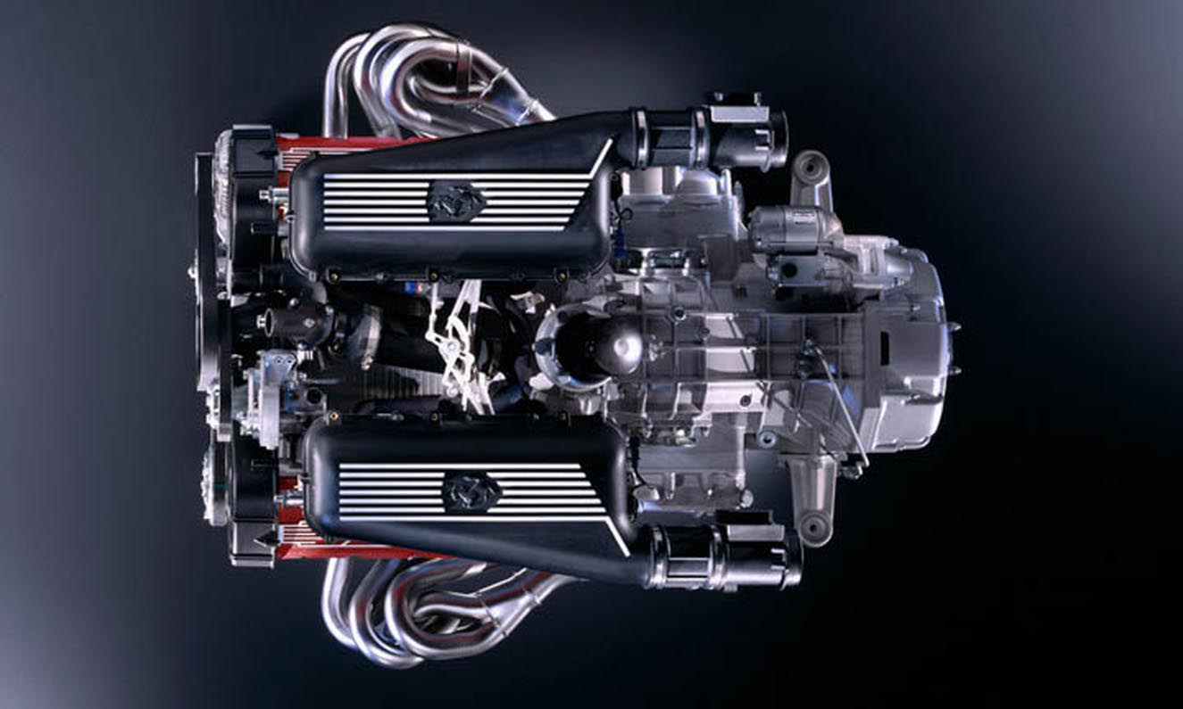 The mid-rear 3496 cc 90° V8 was longitudinally mounted and punched out 380 hp, giving it a specific power output of 109 hp/l. Distribution was by means of twin overhead cams with five valves per cylinder. The con rods were titanium, while the control unit was the Bosch M5.2. Dry sump lubrication and a six-speed plus reverse mechanical gearbox completed the picture along with a dry single-plate clutch.