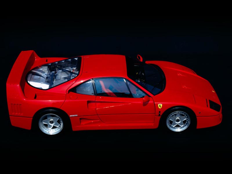 The Ferrari F40 is a mid-engine, rear-wheel drive, two-door coupé sports car produced by Ferrari from 1987 to 1992 as the successor to the Ferrari 288 GTO. From 1987 to 1989 it held the title as the world’s fastest street-legal production car, and during its years of production, was Ferrari’s fastest, most powerful, and most expensive car. It was intended that there were to be 400 Ferrari F40 made, all painted red, but a total 1,315 F40s were produced.