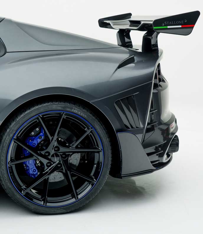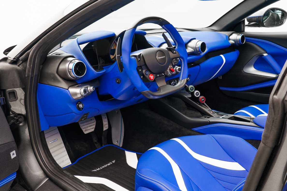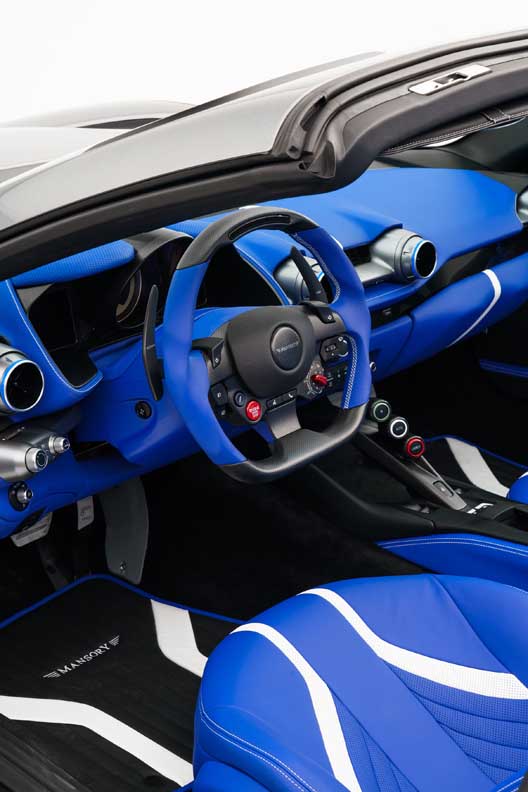 In the interior, MANSORY creates a sport-oriented atmosphere that perfectly combines functionality and comfort. The sports steering wheel, specially designed for the “Stallone GTS”, as well as the aluminium pedals. Both components guarantee full control of the vehicle at all times combined with a maximum of style.