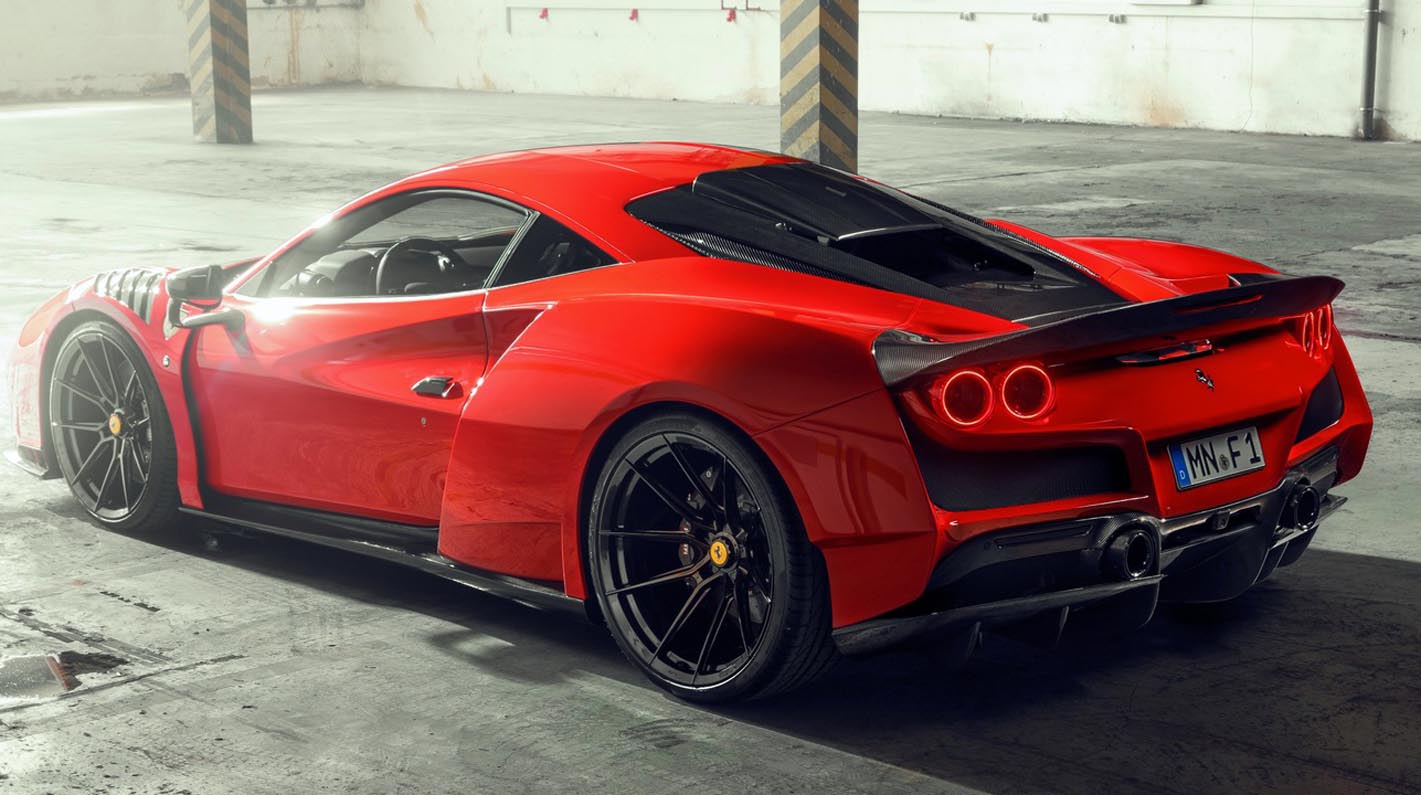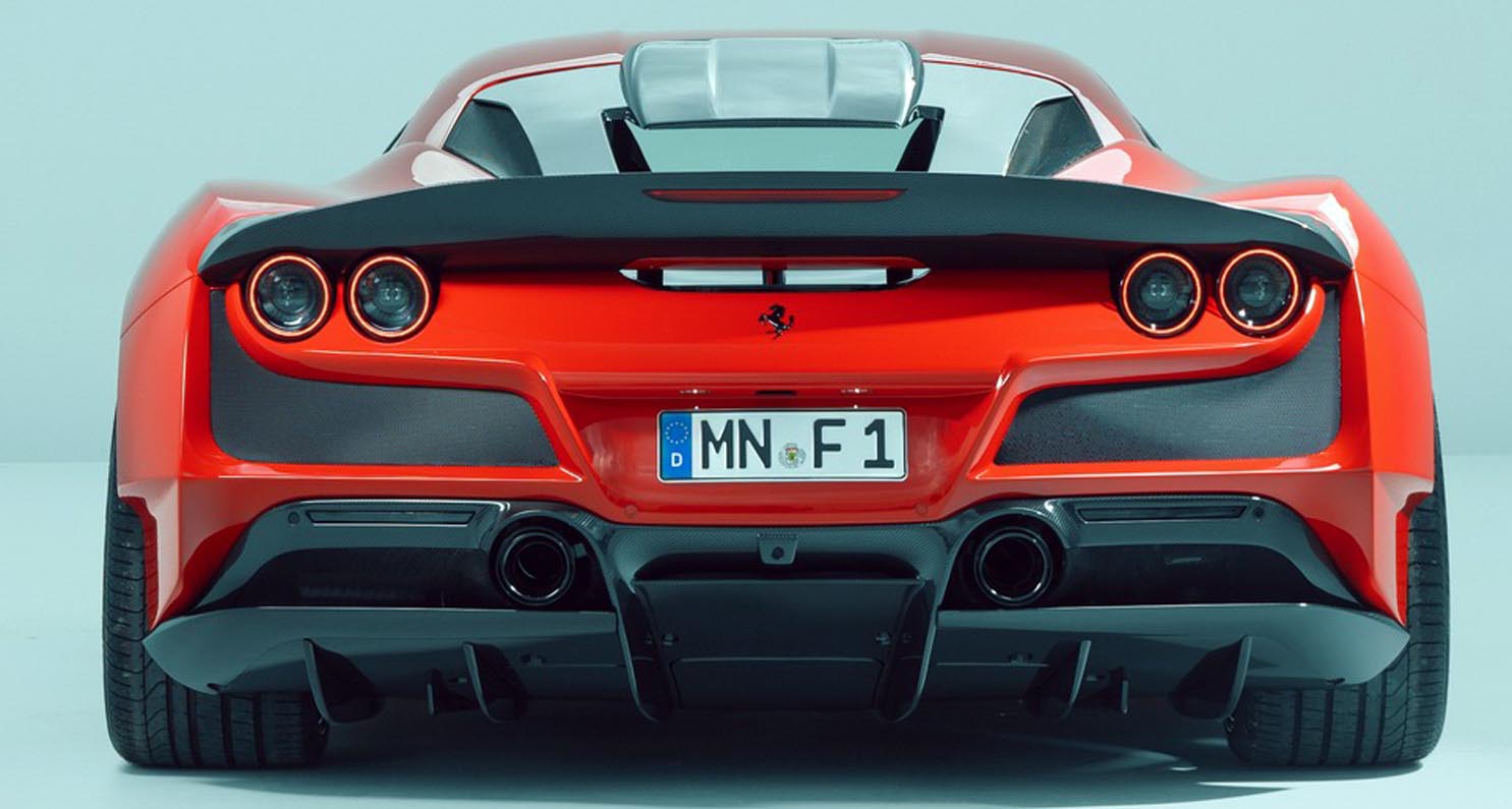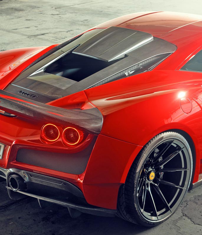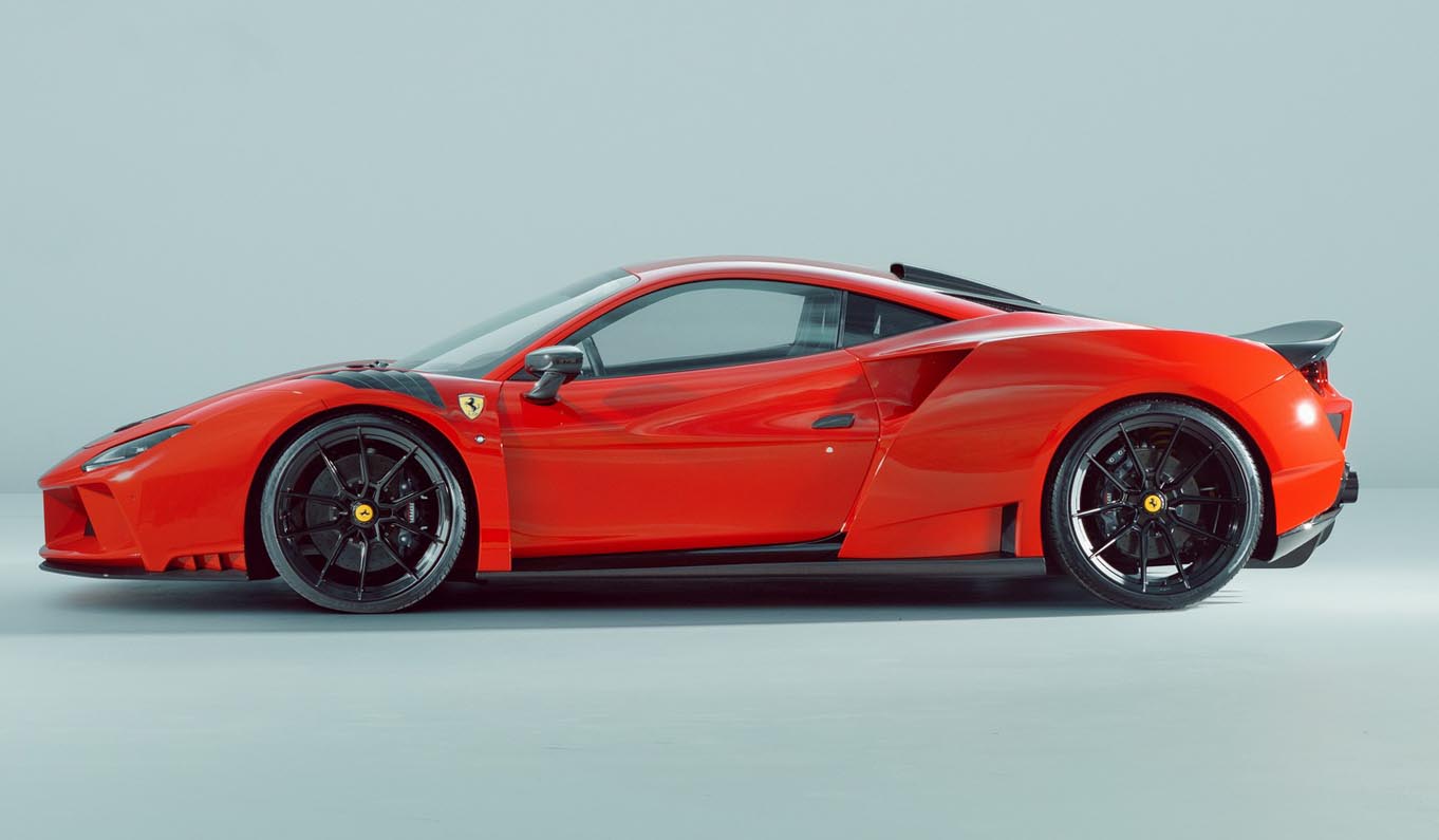 NOVITEC also offers maximum individuality in the interior. Its colors and design can be tailored to the N-LARGO owner’s preferences in every detail. A width of 211 centimeters at the rear axle. This stately dimension of the NOVITEC N-LARGO widebody version surpasses the production Ferrari F8 Tributo by exactly 13 centimeters. To this end, NOVITEC sculpted new, strikingly styled side elements that create the added vehicle width and a new pronounced hourglass shape.