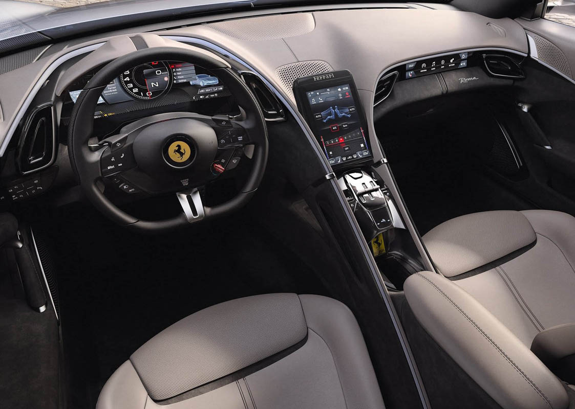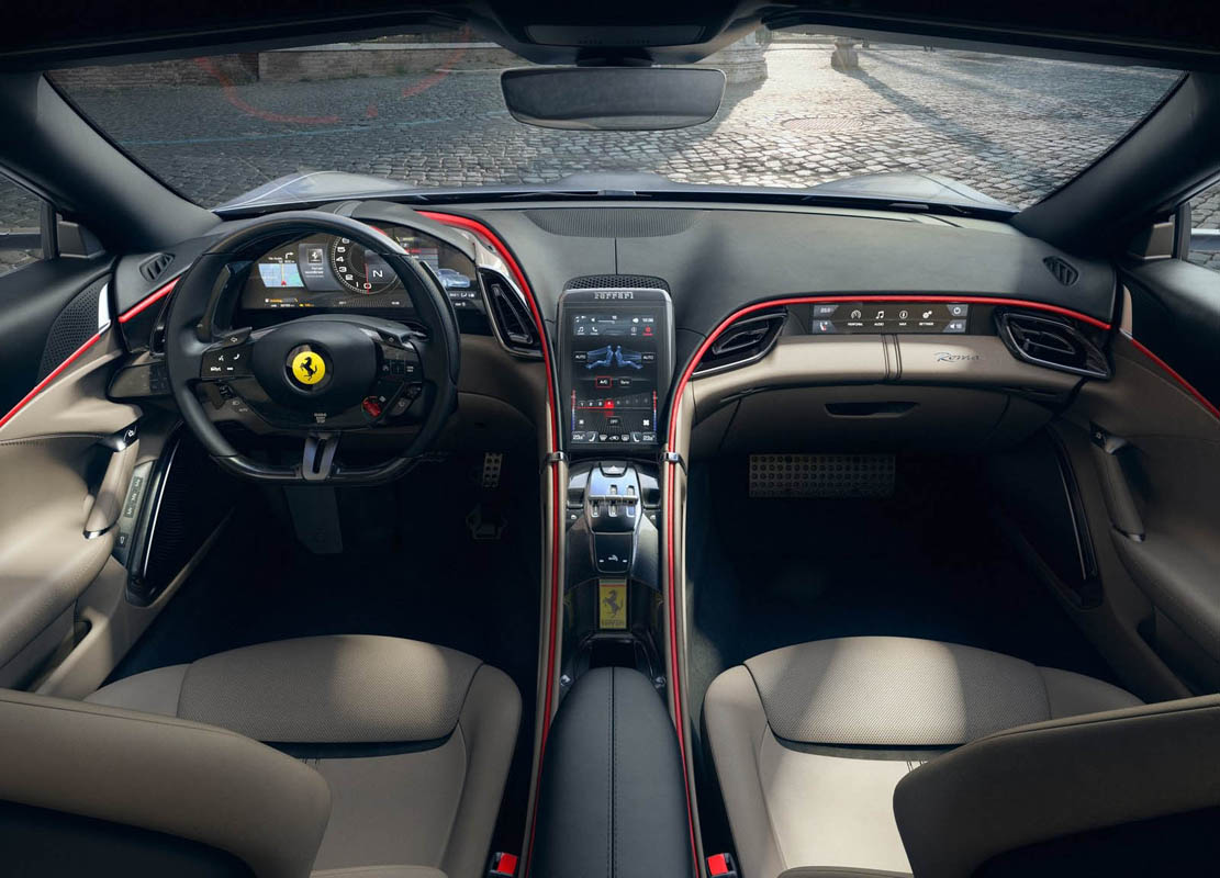 The second a driver or passenger sits in the Ferrari Roma they are instantly aware of a feeling of modern yet iconic luxury, combined with the use of the most exclusive materials, not least full-grain Frau® leather, Alcantara®, chromed aluminium and carbon-fibre. The result is a distinctive car with a design that means the Ferrari Roma effortlessly meets the tastes of the most sophisticated clients. All of this makes the Ferrari Roma perfect for those looking for a car with an iconic and timeless design, capable of delivering unique driving experiences. The Prancing Horse’s new V8 2+ coupé embodies, beyond any doubt, the concept of “La Nuova Dolce Vita”.