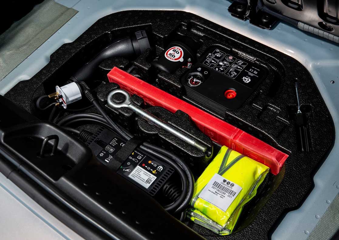 The New Fiat 500 ACTION is equipped with a 50kW fast charging system, so charging the battery to ensure enough mileage for the average commute takes less than 10 minutes. A 3kW cable is also included for charging at home or at work. The Combo 2 socket, located on the rear right side panel of the car, powers fast charging in both AC and DC. For charging at home or in public, a three-phase 11kW Mode 3 cable is available to purchase, along with a Wallbox by Mopar.