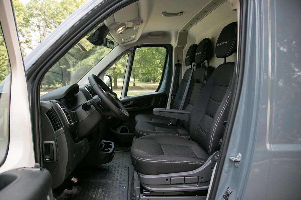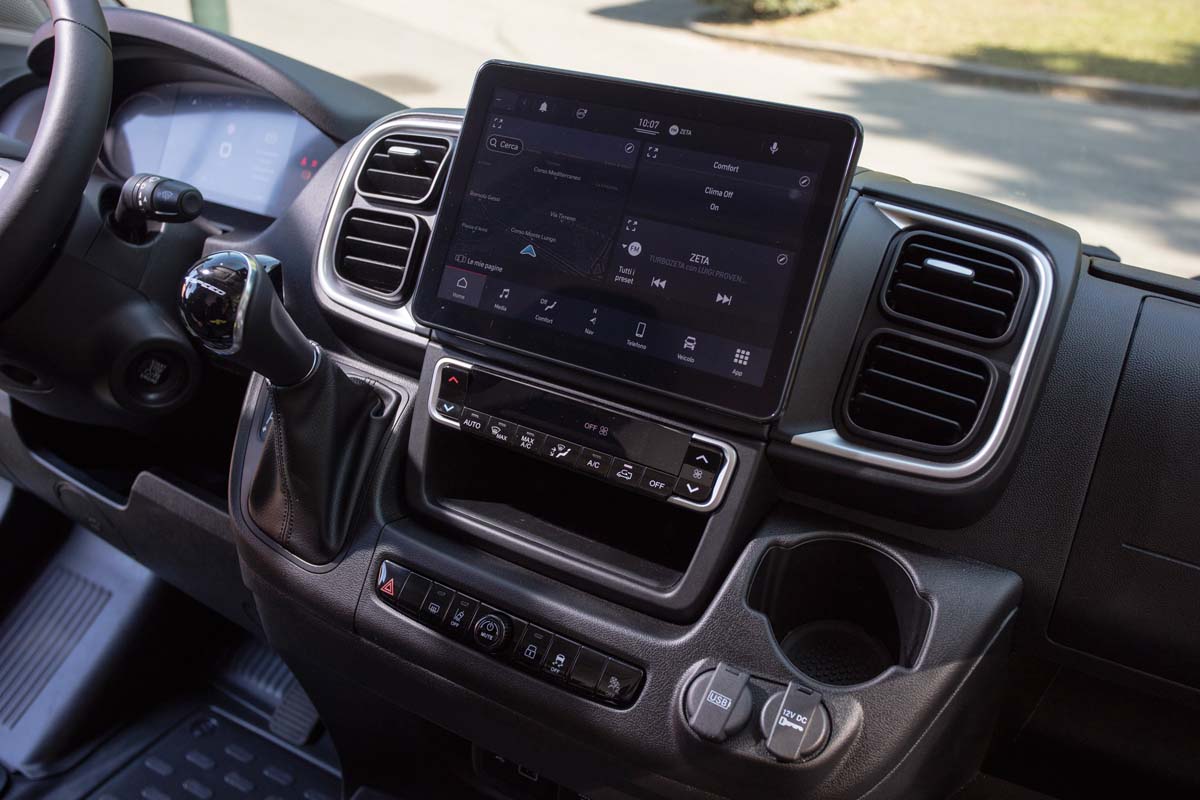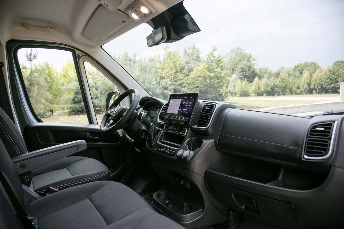 To further improve the vehicle’s maneuverability, conventional power steering has been replaced with a self-adjusting electrically assisted drive system, to make it easier to park. In the meantime, the traditional “all-forward” Ducato architecture continues to ensure the best load capacity and steering radius in its class, and more generally, greater passenger comfort courtesy of self-leveling air suspension.