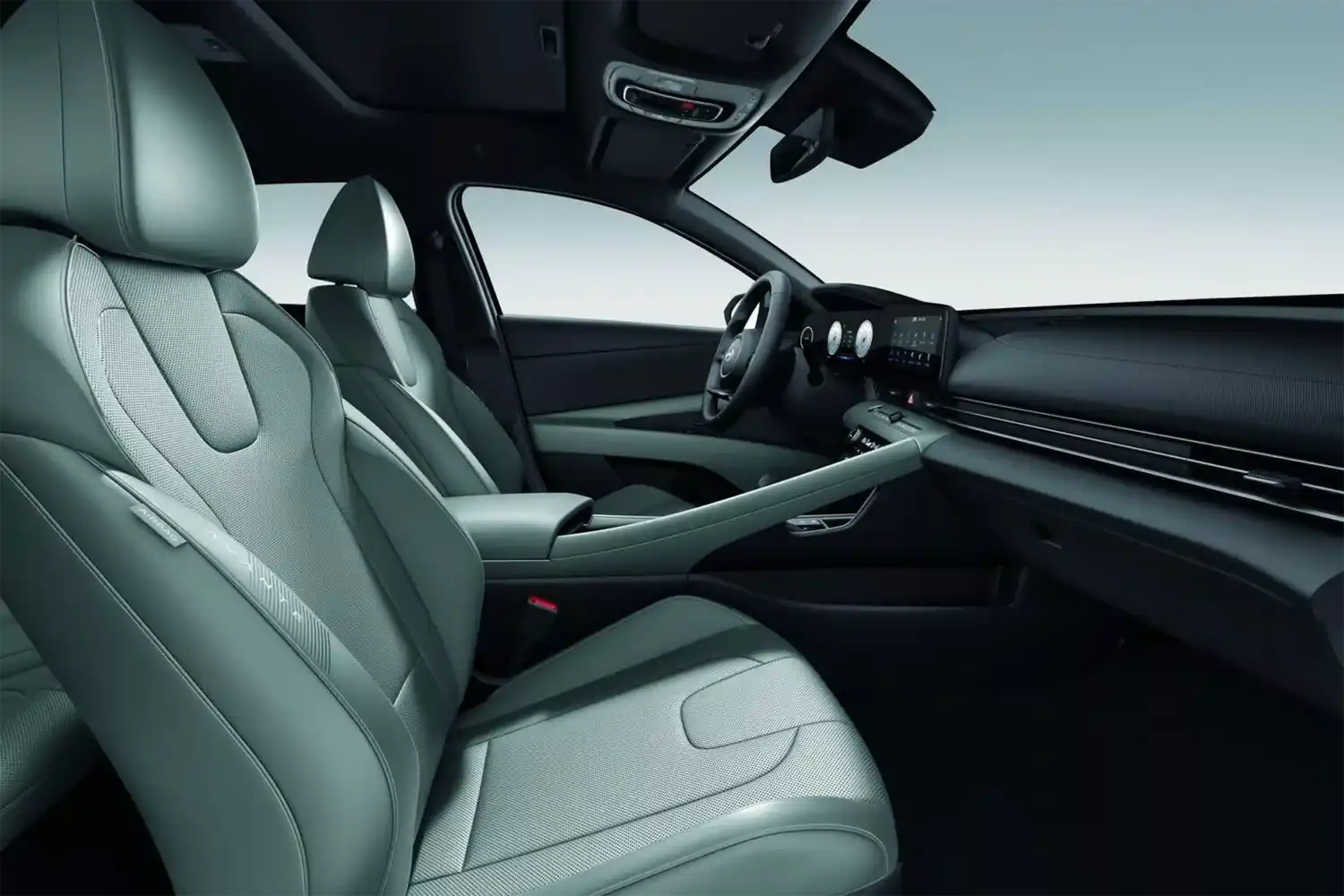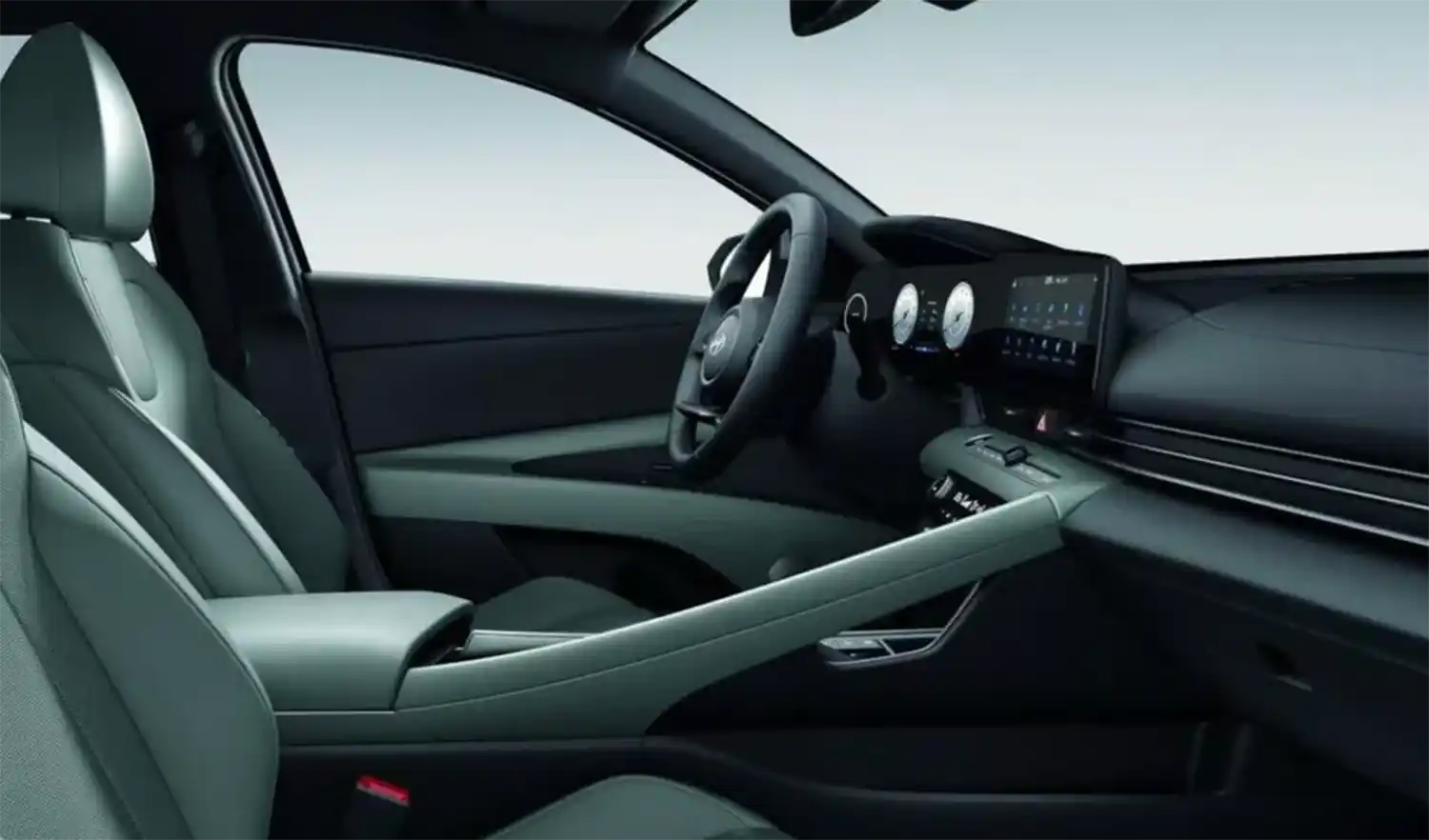 Hyundai didn’t change much in the interior, staying with a digital cockpit with dual 10.25-inch screens. The only thing new is Sage Green upholstery for the seats, on the center console, and on the door panels.
