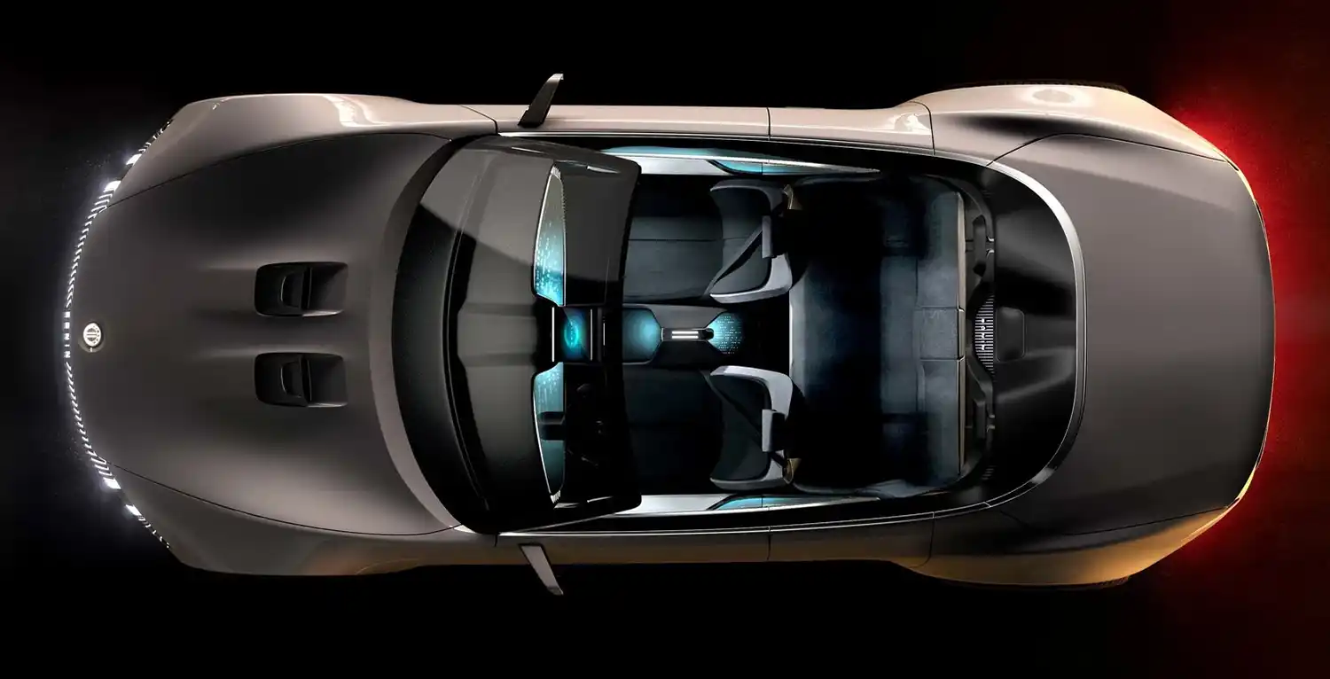 Rear butterfly doors will ensure easy rear-seat access. Only a single door handle will be required, as the front doors open electrically by swiping the handle or by using a smartphone; the handle then extends when the rear doors are ready to be opened. All doors can be opened remotely by a smartphone, and the foldable, carbon-fiber hardtop will also be smartphone activated and automatically retract into the trunk, leaving some luggage space; additional luggage space will be available in the front trunk.