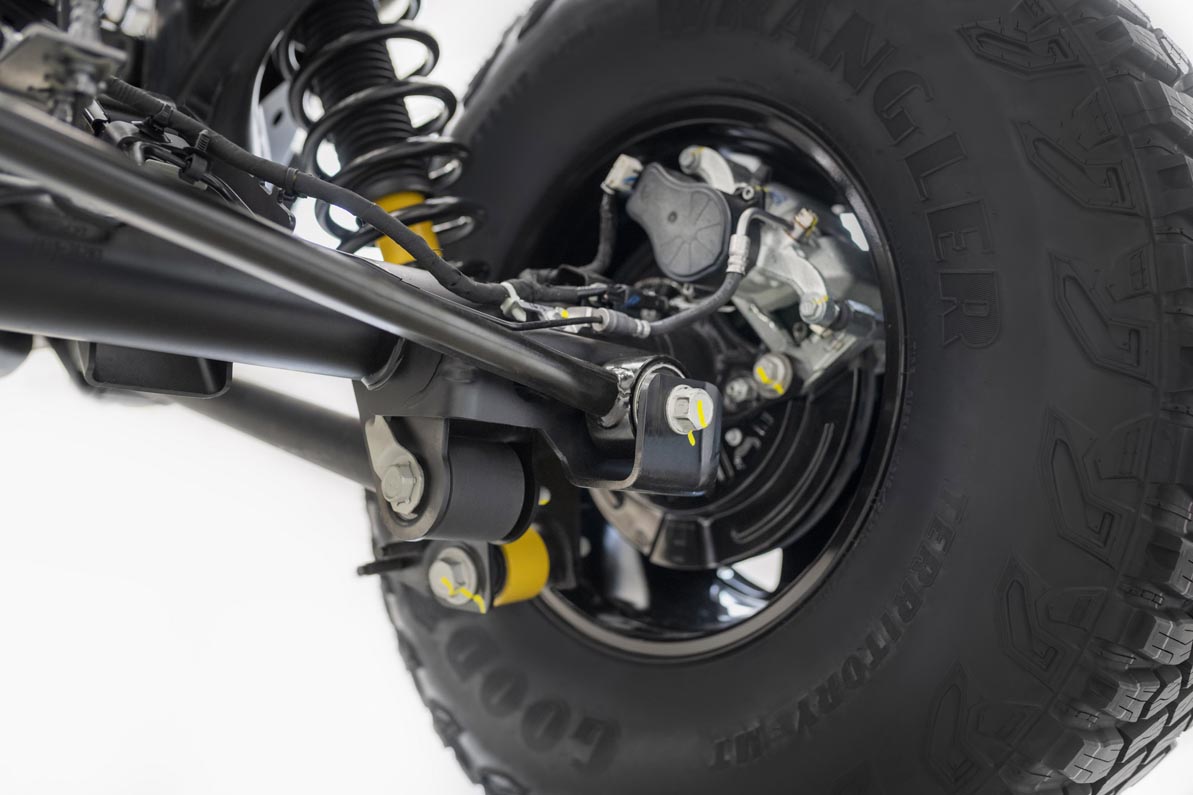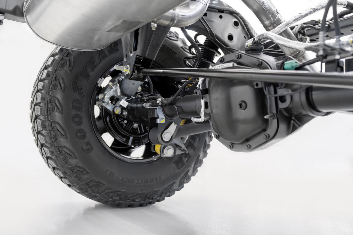 Off-road capability is at the heart of the all-new Bronco – and the standard High-performance Off-road Suspension System (HOSS) means every Bronco is always ready for action. Front suspension consists of twin alloy A-arms and coil-over springs for optimum off-road stability and control, while a five-link solid rear axle design features coil-over springs for incredible off-road capability and durability. An available front stabliser bar disconnect system allows for extra wheel articulation for challenging terrain. Along with electronic power-assist rack-and-pinion steering, Bronco provides the right combination to improve control, stability and comfort at higher speeds.