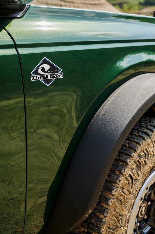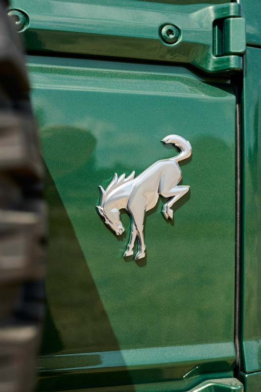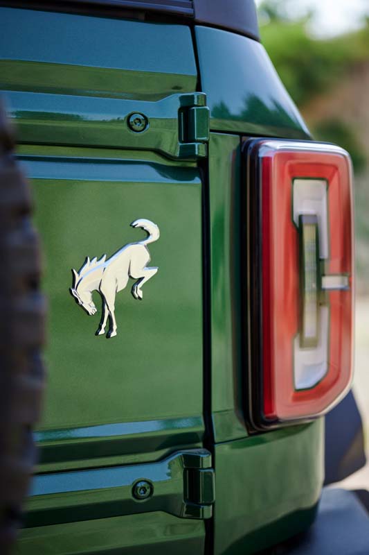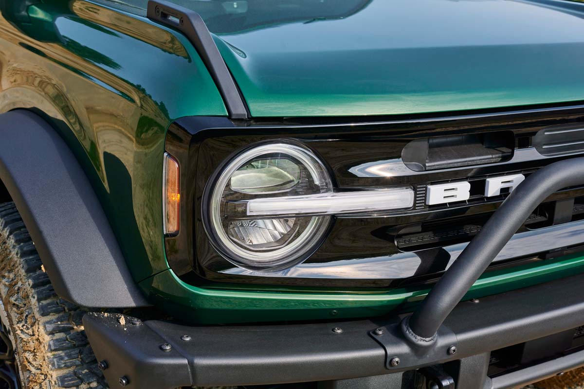 Ford Bronco color and materials designers developed Eruption Green Metallic as a modern interpretation of Mallard Green, which was featured on first-generation Bronco models in the early- to mid-1970s.