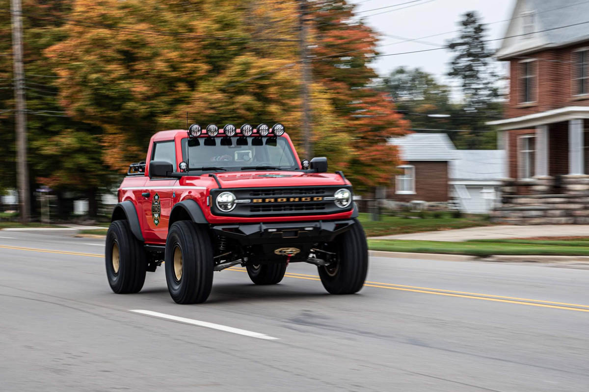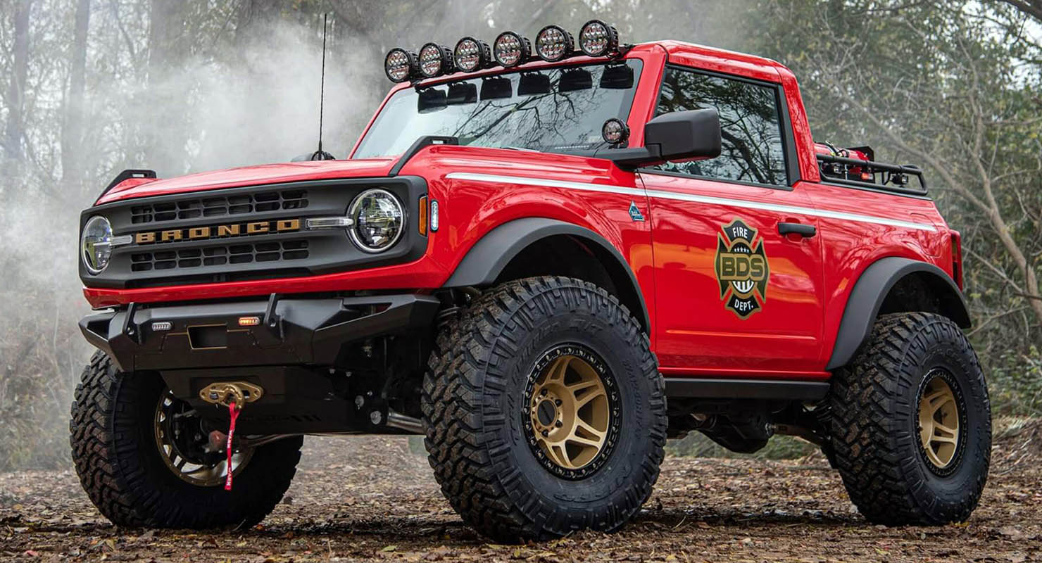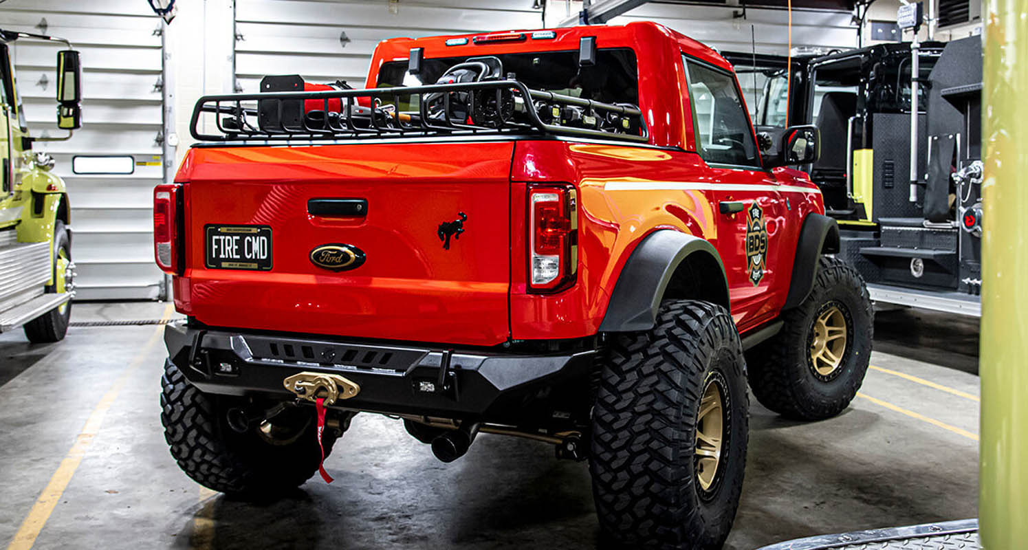 In just 10 weeks, BDS, makers of extreme duty suspension, have completely overhauled a bone stock 2 door Ford Bronco Black Diamond Edition into a mission-ready “half-cab” Bronco pickup. Built with a backwoods fire/rescue theme, the ultra-capable Bronco is designed to help a fire chief or command-lead get on-site quickly. The goal is to assess each situation and build a tactical plan of attack for the team. “Fire Command” as it’s been dubbed, is a one-of-a-kind short wheelbase Bronco truck that pays homage to the early Broncos used by many rural fire departments decades ago.