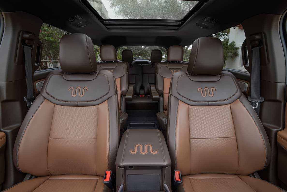 Customer feedback and market insights have demanded a more refined interior for Explorer. Explorer King Ranch will now deliver with premium touches and mahogany-colored Mesa Del Rio leather seats with perforated front and second rows with the legendary King Ranch Running W logo. The center console is crafted with a Mesa Del Rio leather armrest and King Ranch logo insert.