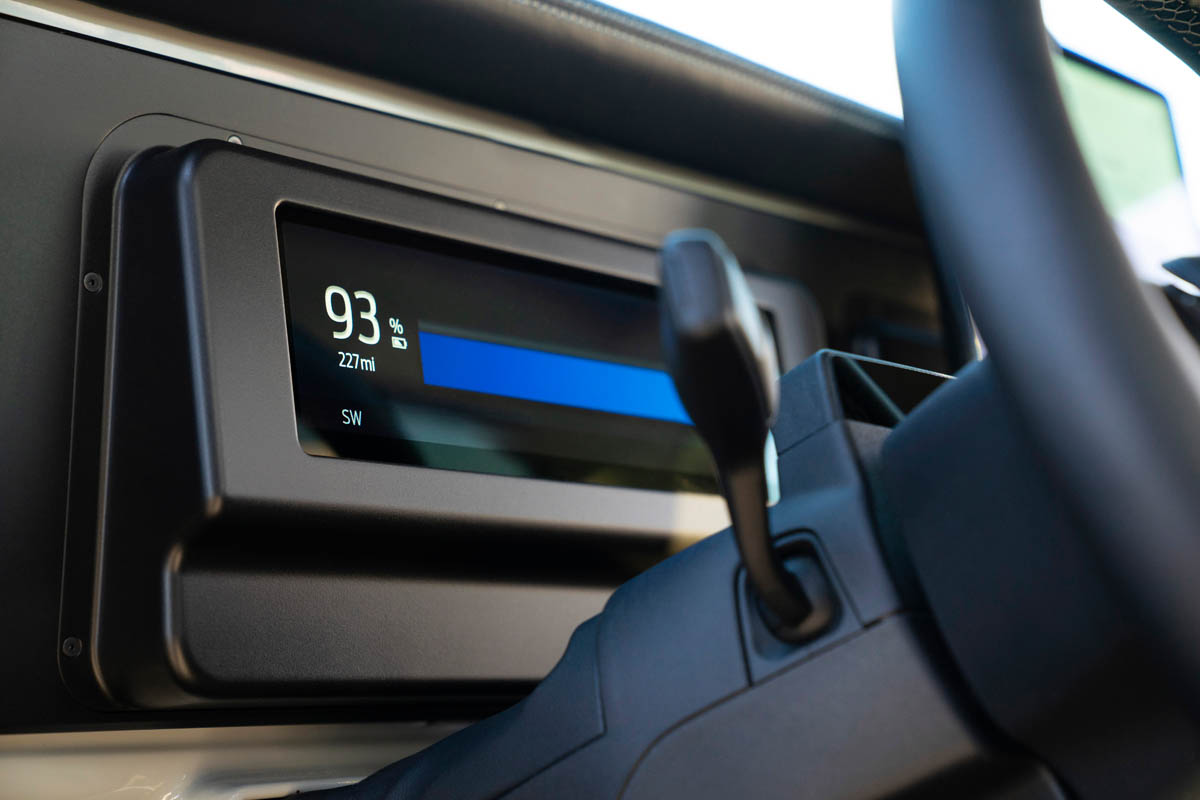 The all-electric F-100 Eluminator concept, designed and created by Ford Performance, was built in collaboration with MLe Racecars and sits on a custom chassis by the Roadster Shop. It’s painted in Avalanche Gray with Cerakote Copper accents applied by Brand X Customs, while the interior features a billet aluminum dash by JJR Fabrication and avocado-tanned leather upholstery by MDM Upholstery. It’s fitted with custom 19×10-inch billet aluminum three-piece wheels by Forgeline wrapped in Michelin® Latitude® Sport 275/45-19 high-performance tires.