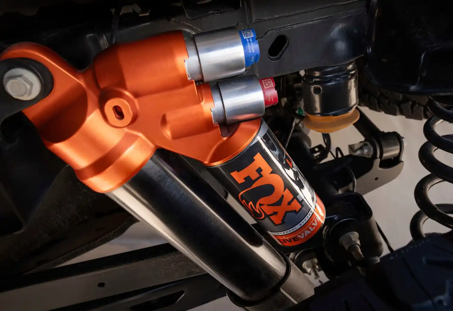 The 2024 F-150 Raptor boasts new FOX Dual Live Valve shocks to provide a more confident, controlled riding experience. Now, with position-sensitive compression control standard, new continuously variable rebound controls work to further enhance both off-road and on-road driving thanks to Dual Live Valve technology. With the success of FOX Live Valve shock technology launched on F-150 Raptor in the 2019 model year, this is the natural evolution of the technology to add even more capability to Raptor’s already impressive suspension system.