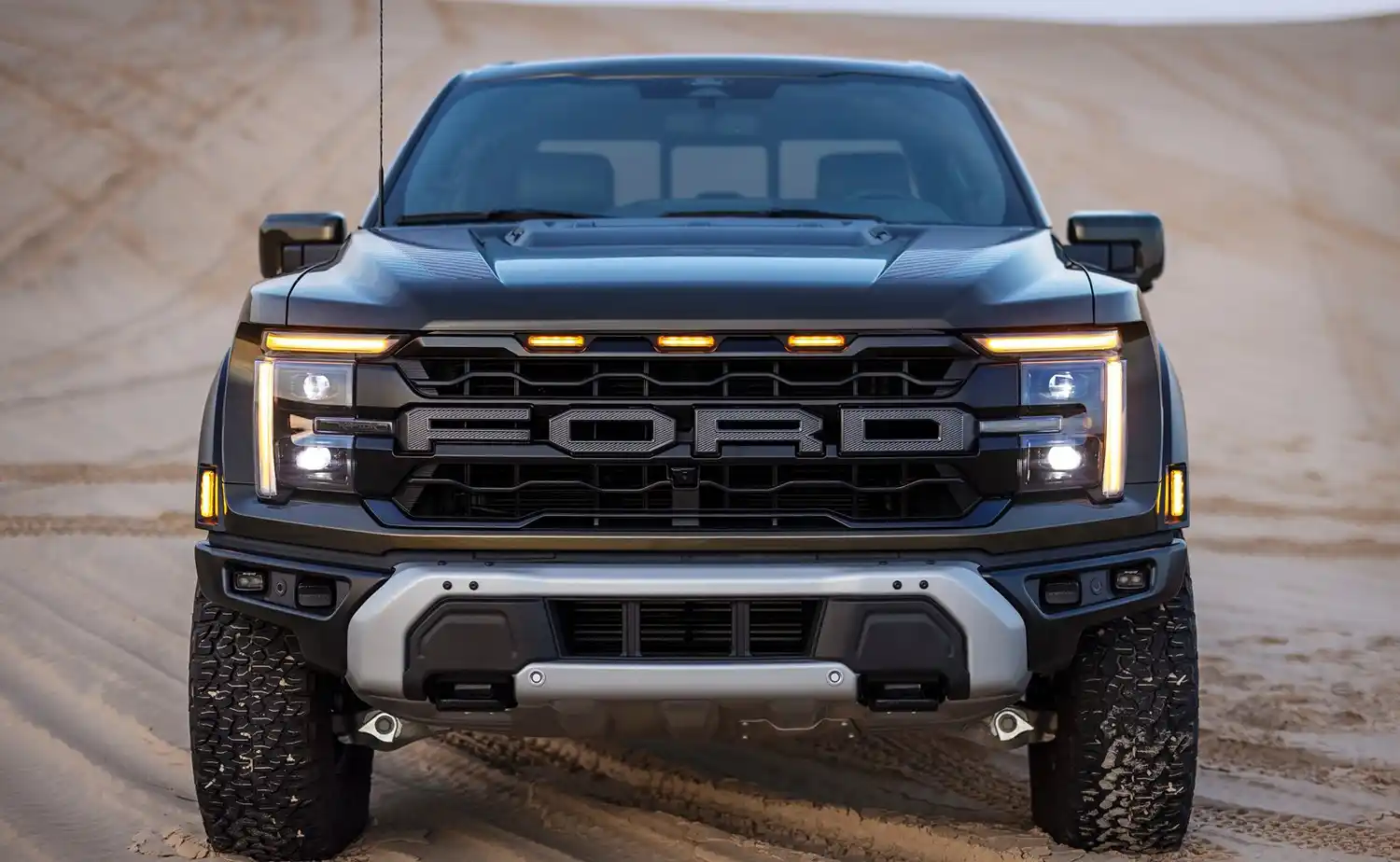 Standard forged tow hooks at the front, much wider than the non-modular bumper offering, offer strong attachment points if drivers need to rescue non-Raptor vehicles while off-roading. A wide blackout grille treatment with new headlamps adds even more aggressive styling to Raptor.