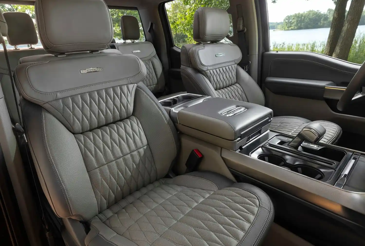 On XLT and Lariat, the new modernized Medium Dark Smoked Truffle color seats paired with a black interior give the vehicle a warm appearance, combining earth and mushroom tones for a natural feel that’s the perfect companion to the black interior color scheme. Platinum Plus will also be available with a new Smoked Truffle interior featuring Dark Smoked Truffle accents.