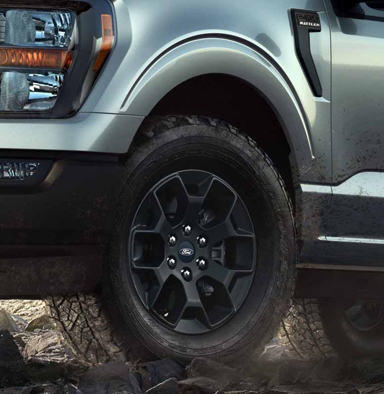 Distinctive looks reflect the capabilities of the F-150 Rattler package, with a dual exhaust system that combines aggressive styling with a bold sound, plus painted 18-inch aluminum wheels that add to the truck’s solid, sporty stance. F-150 Rattler badging on the fender vents and rattlesnake-inspired graphics amplify its unmistakable appearance.
