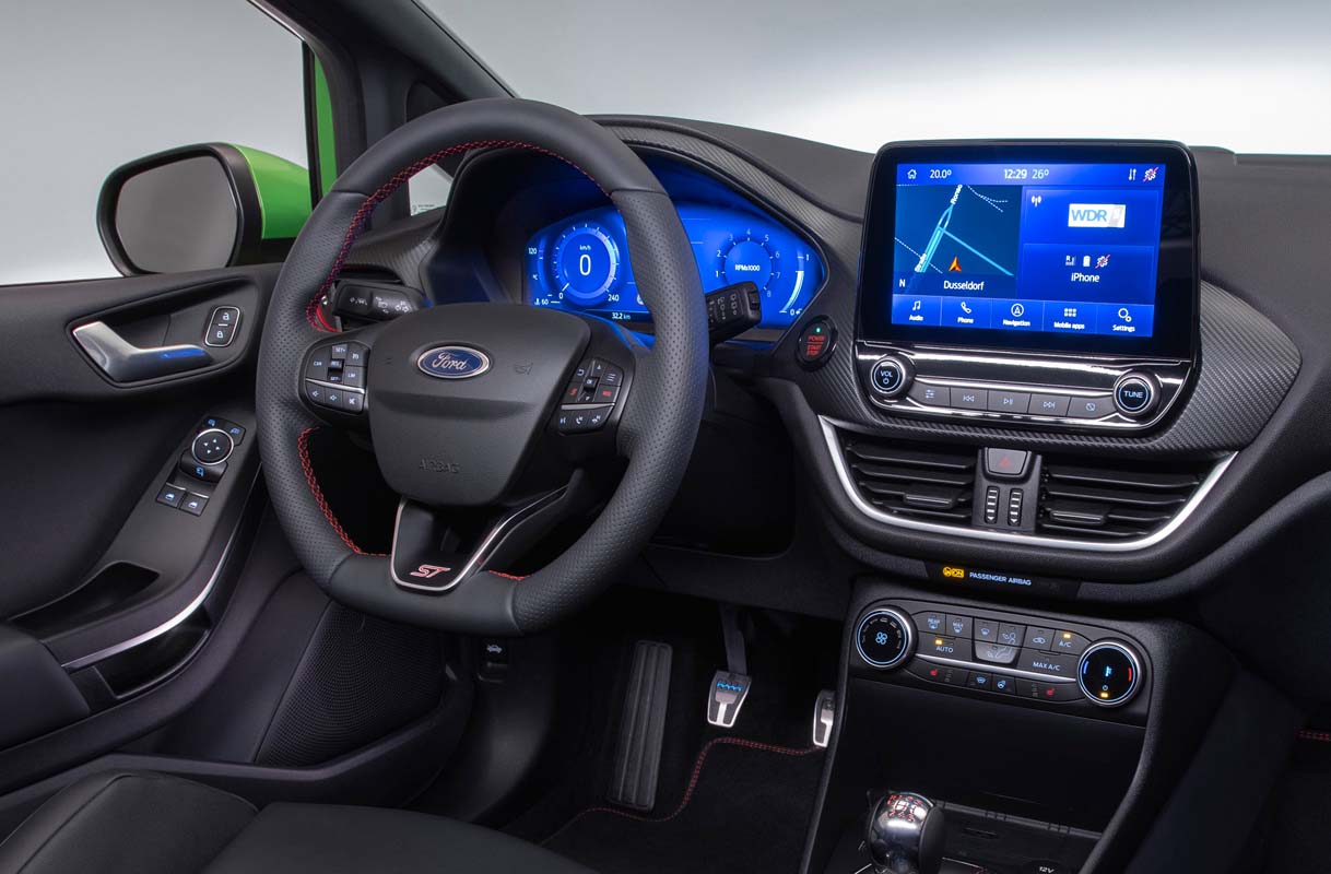 Ford today also unveiled the new Ford Performance-developed Fiesta ST. The hot hatchback experience is enhanced with new Matrix LED headlights, new in-house-developed Performance Seats, sporty design details including a new Chrystaline Grey front grille and striking Mean Green exterior paint option – as well as a 10 per cent peak torque boost to 320 Nm.