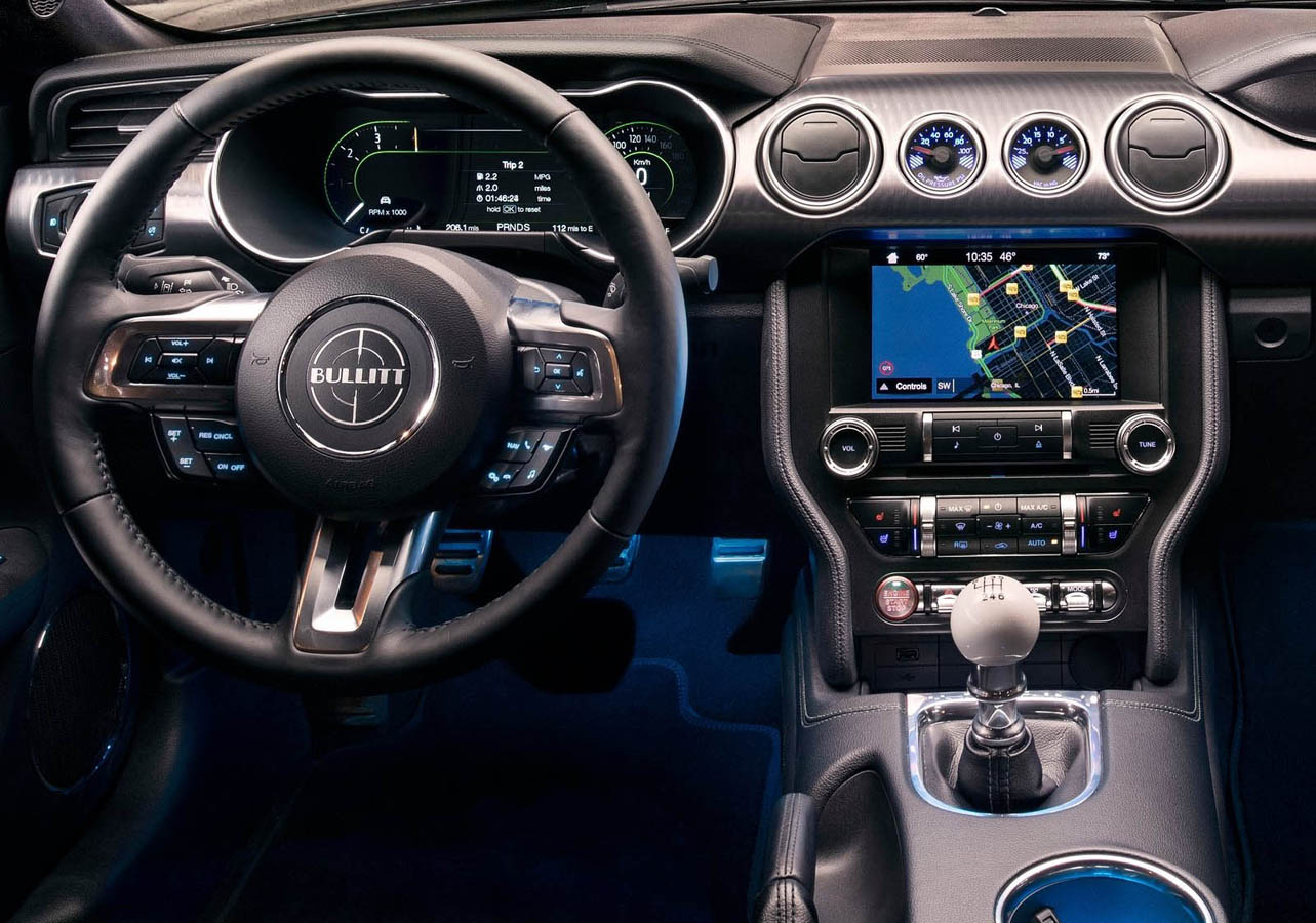 - Bullitt Electronics Package includes navigation, driver memory seats and mirrors, upgraded sound system and Blind Spot Information System with Cross-Traffic Alert that can alert customers of vehicles detected in difficult-to-see places